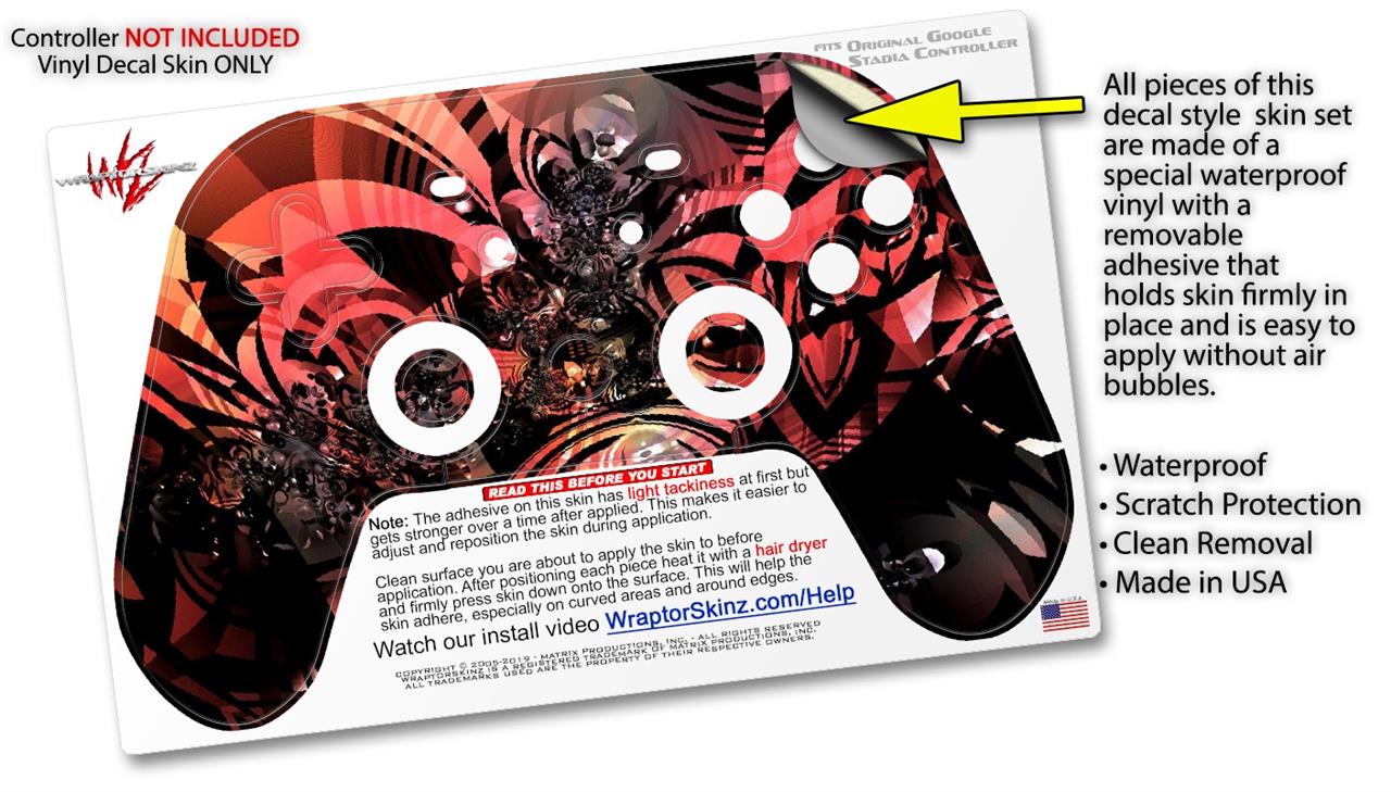 This product is in no way affiliated with or endorsed by Google. WraptorSkinz® skin wraps work with the Original Google Stadia version 1 Controller. Printed using superb photo quality designs and vibrant colors printed with special fade resistant inks that last even in direct sun for years. WraptorSkinz are a composite of two layers of commercial grade materials. The bottom layer is a soft, flexible vinyl with a special removable adhesive that is easily positioned, applied without air bubbles. Next, we print the bottom layer with UV protected, fade resistant inks that deliver superb photo quality designs in vibrant colors. Finally, we bond a professional grade laminate over the entire skin adding a glossy protective finish.