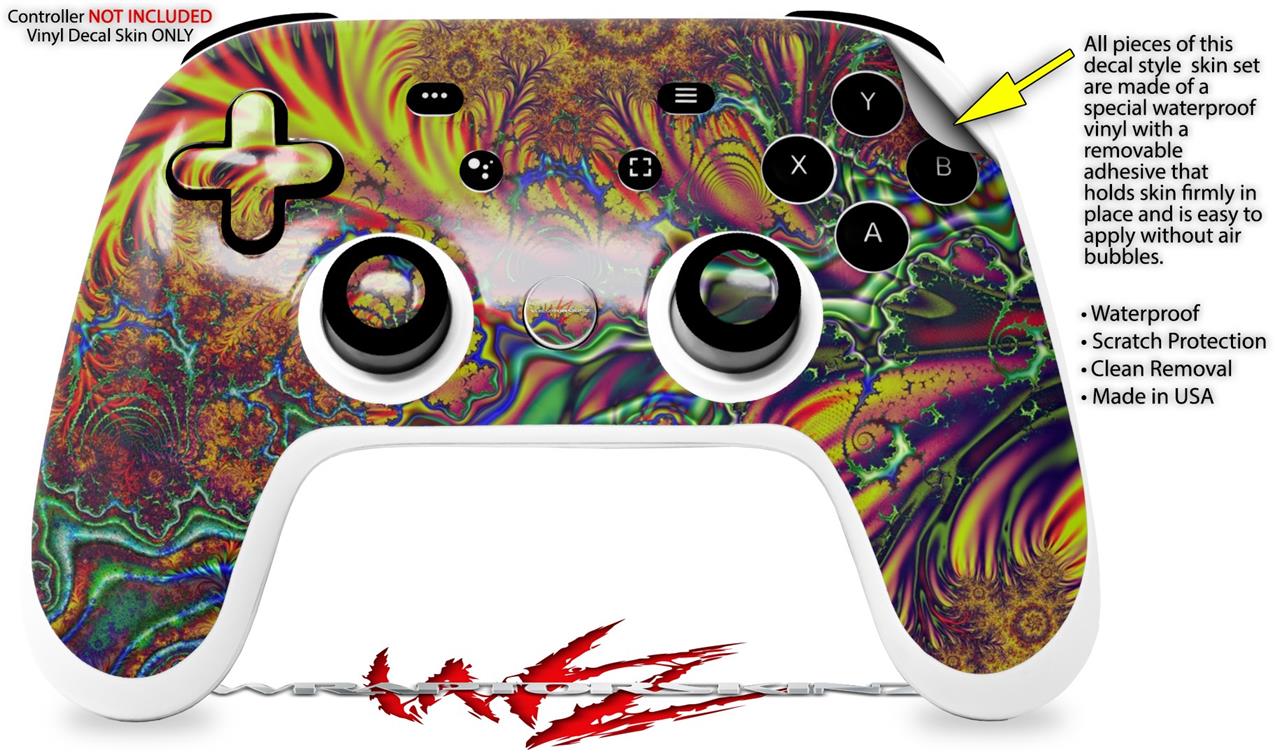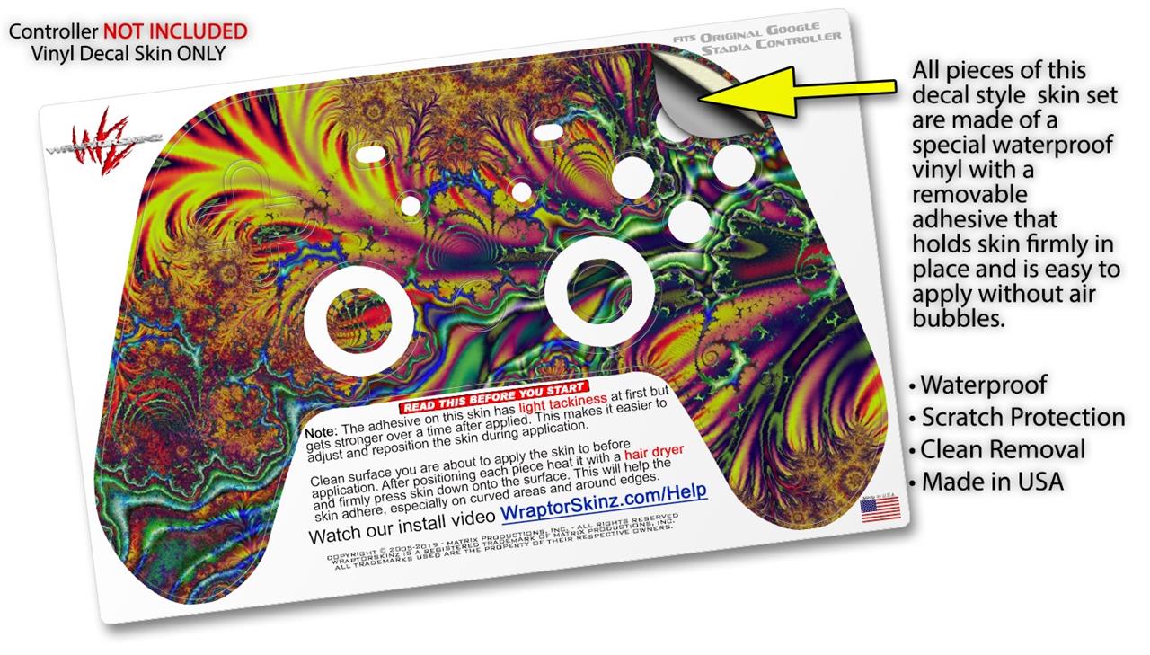 This product is in no way affiliated with or endorsed by Google. WraptorSkinz® skin wraps work with the Original Google Stadia version 1 Controller. Printed using superb photo quality designs and vibrant colors printed with special fade resistant inks that last even in direct sun for years. WraptorSkinz are a composite of two layers of commercial grade materials. The bottom layer is a soft, flexible vinyl with a special removable adhesive that is easily positioned, applied without air bubbles. Next, we print the bottom layer with UV protected, fade resistant inks that deliver superb photo quality designs in vibrant colors. Finally, we bond a professional grade laminate over the entire skin adding a glossy protective finish.