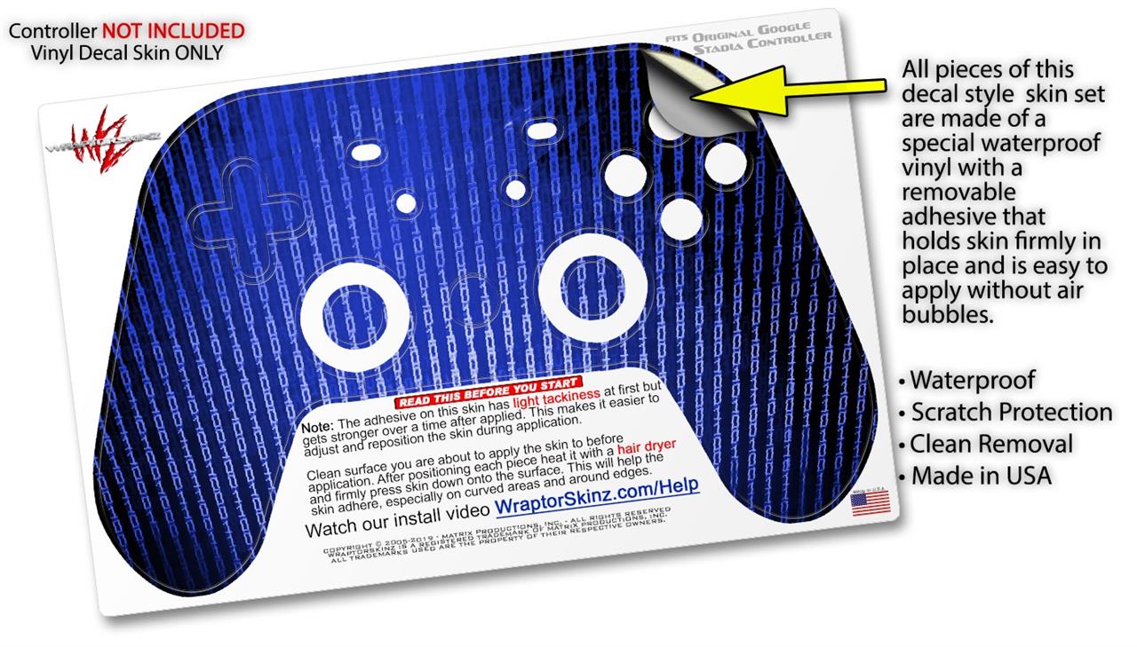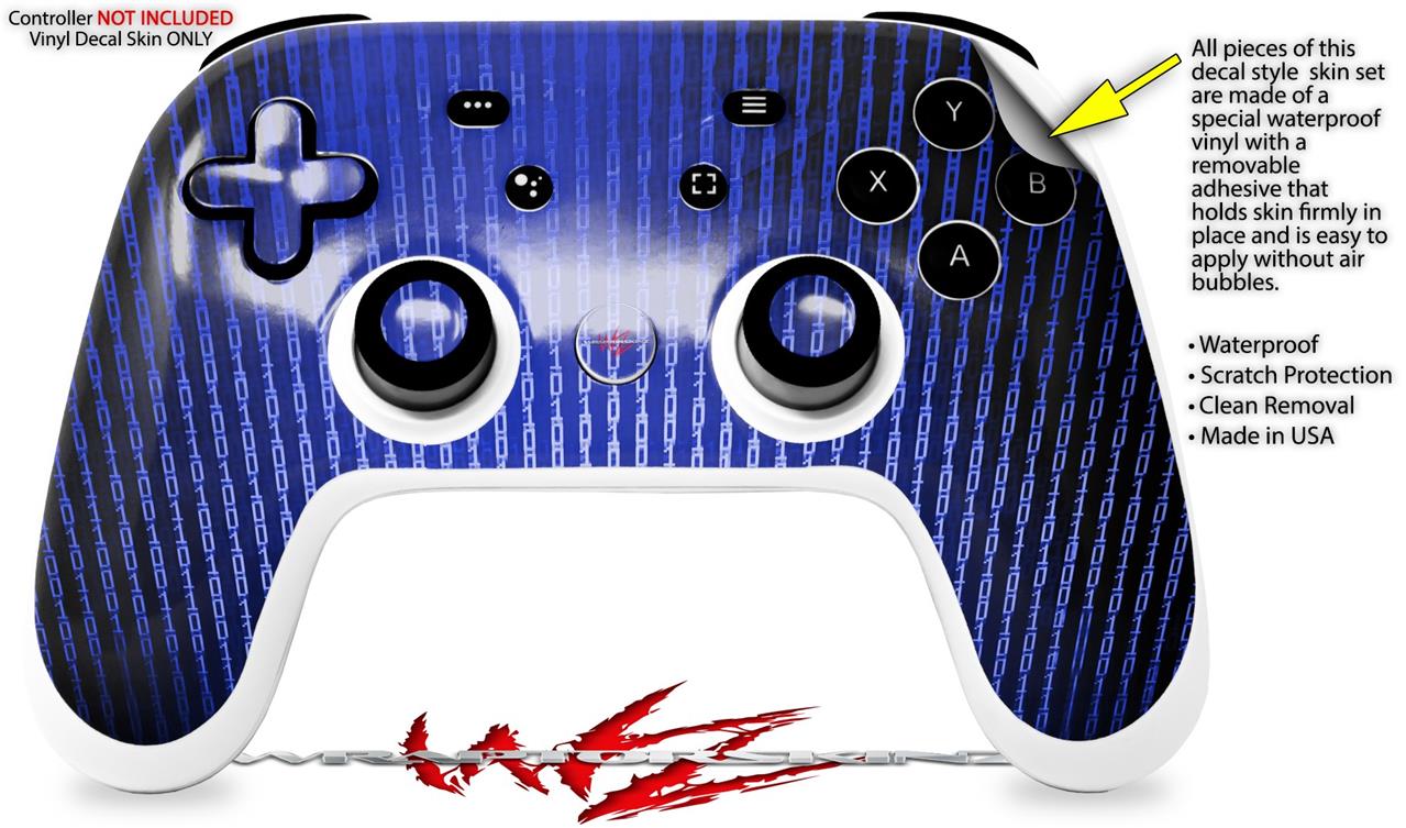 Skin Decal Wrap works with Original Google Stadia Controller Binary Rain Blue Skin Only CONTROLLER NOT INCLUDED