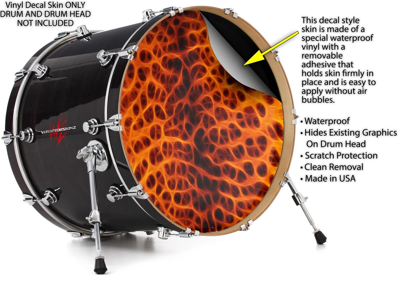 This design also available in other sizes. WraptorSkinz® skin wraps compatible with most kick drum heads. Printed using superb photo quality designs and vibrant colors printed with special fade resistant inks that last even in direct sun for years. WraptorSkinz are a composite three layer commercial grade materials vinyl. The bottom layer is a air release, grey block out removable adhesive that hides existing graphics on the drum head and is easily applied without air bubbles. The middle layer is a flexible vinyl printed with UV protected, fade resistant inks that deliver superb photo quality designs in vibrant colors. Finally, we bond a professional grade laminate over the entire skin adding a glossy protective finish.