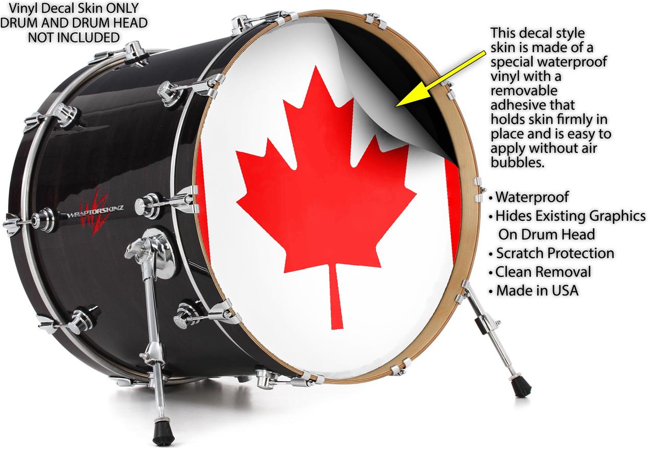 Vinyl Decal Skin Wrap for 20" Bass Kick Drum Head Canadian Canada Flag - DRUM HEAD NOT INCLUDED