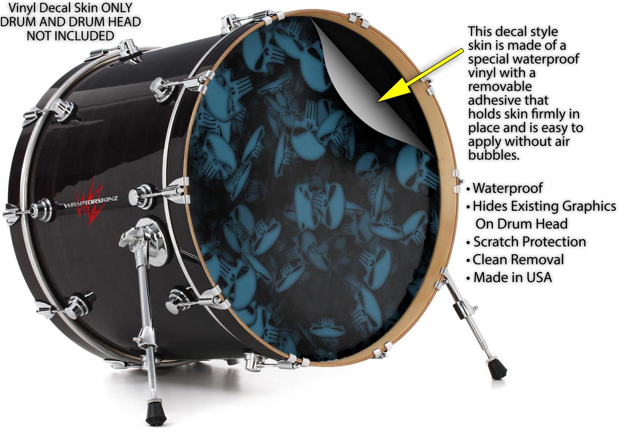 Vinyl Decal Skin Wrap for 20" Bass Kick Drum Head Skulls Confetti Blue - DRUM HEAD NOT INCLUDED