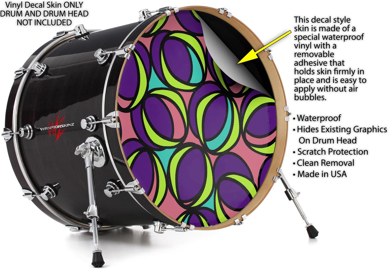 This design also available in other sizes. WraptorSkinz® skin wraps compatible with most kick drum heads. Printed using superb photo quality designs and vibrant colors printed with special fade resistant inks that last even in direct sun for years. WraptorSkinz are a composite three layer commercial grade materials vinyl. The bottom layer is a air release, grey block out removable adhesive that hides existing graphics on the drum head and is easily applied without air bubbles. The middle layer is a flexible vinyl printed with UV protected, fade resistant inks that deliver superb photo quality designs in vibrant colors. Finally, we bond a professional grade laminate over the entire skin adding a glossy protective finish.