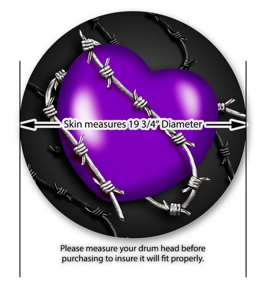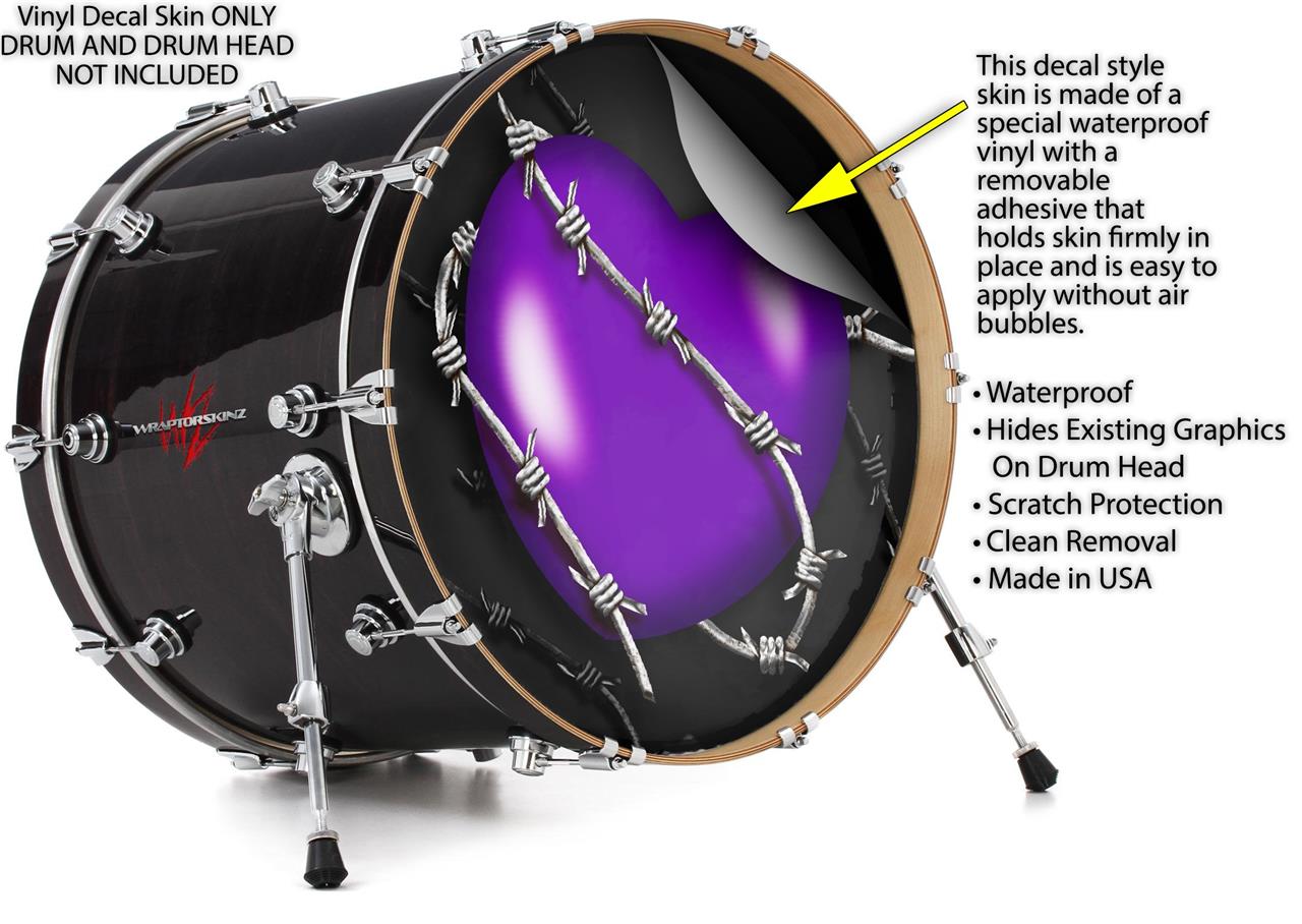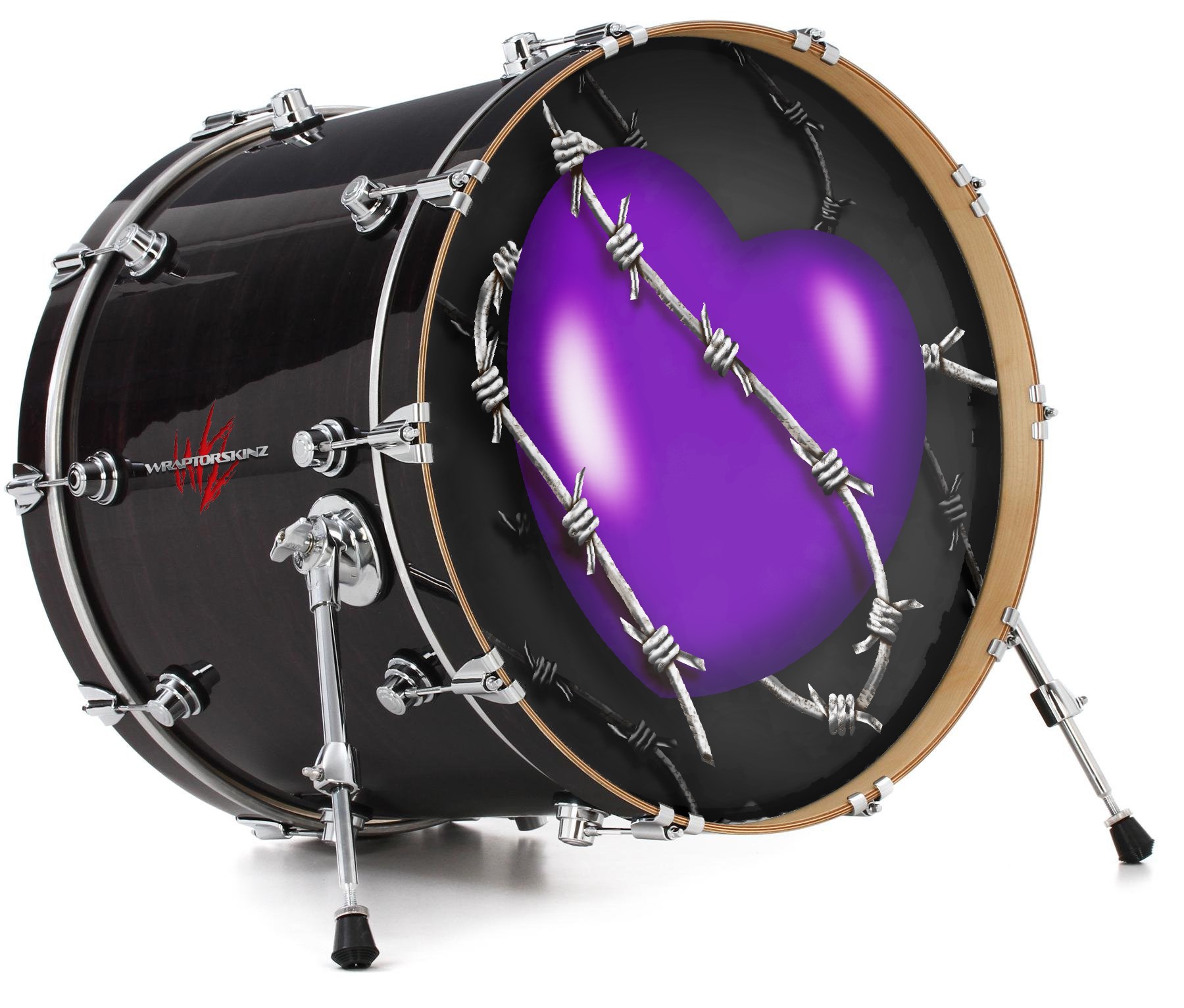 Vinyl Decal Skin Wrap for 20" Bass Kick Drum Head Barbwire Heart Purple - DRUM HEAD NOT INCLUDED