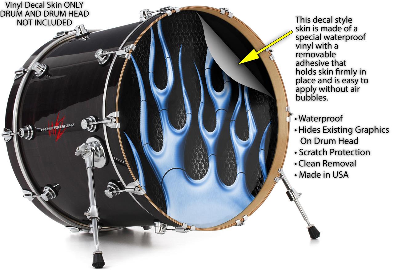 Vinyl Decal Skin Wrap for 20" Bass Kick Drum Head Metal Flames Blue - DRUM HEAD NOT INCLUDED