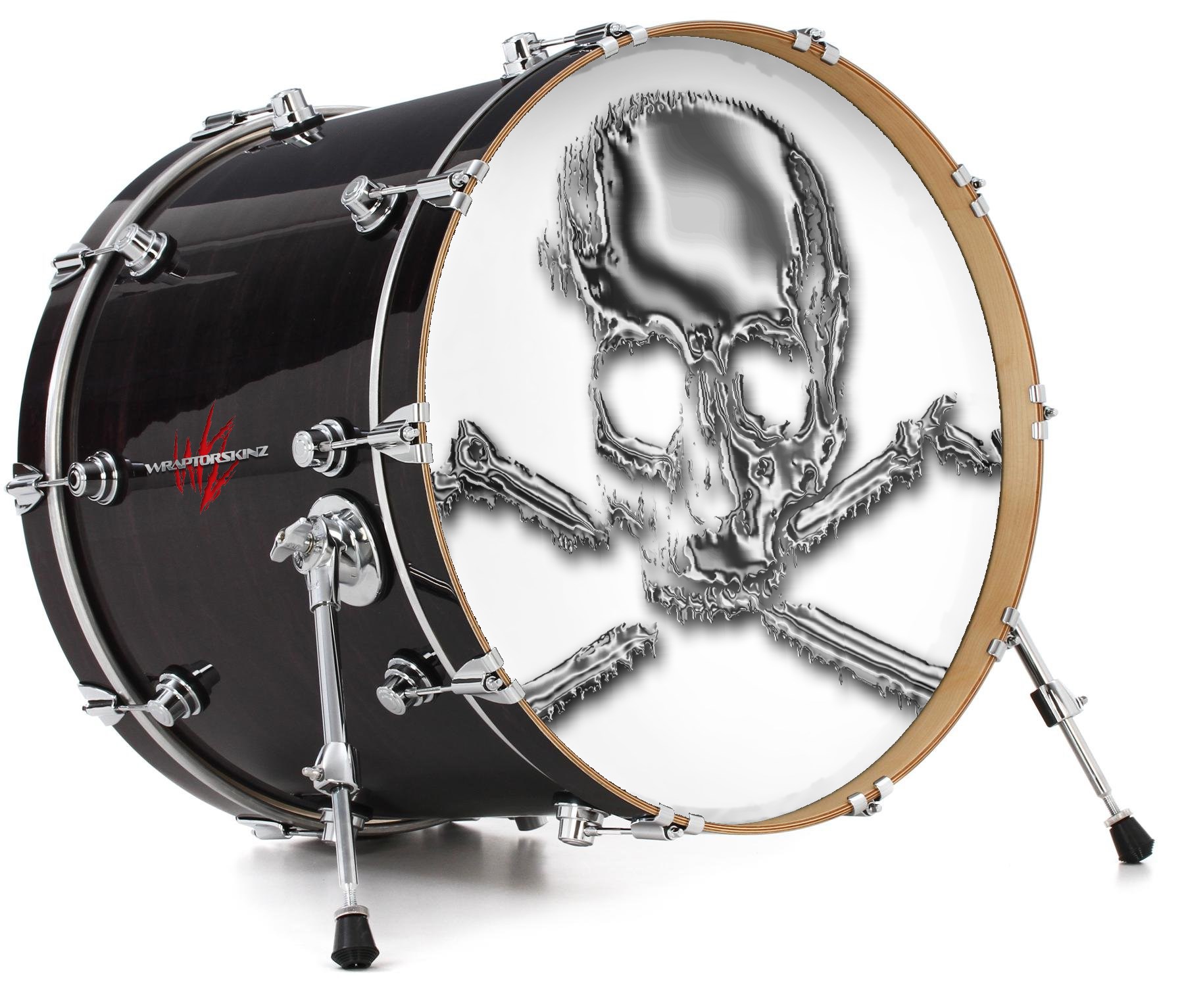 Vinyl Decal Skin Wrap for 20" Bass Kick Drum Head Chrome Skull on White - DRUM HEAD NOT INCLUDED