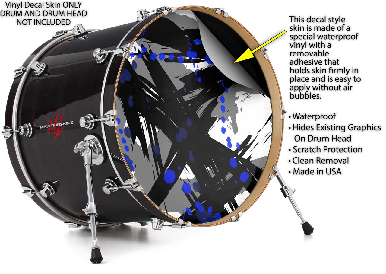 This design also available in other sizes. WraptorSkinz® skin wraps compatible with most kick drum heads. Printed using superb photo quality designs and vibrant colors printed with special fade resistant inks that last even in direct sun for years. WraptorSkinz are a composite three layer commercial grade materials vinyl. The bottom layer is a air release, grey block out removable adhesive that hides existing graphics on the drum head and is easily applied without air bubbles. The middle layer is a flexible vinyl printed with UV protected, fade resistant inks that deliver superb photo quality designs in vibrant colors. Finally, we bond a professional grade laminate over the entire skin adding a glossy protective finish.