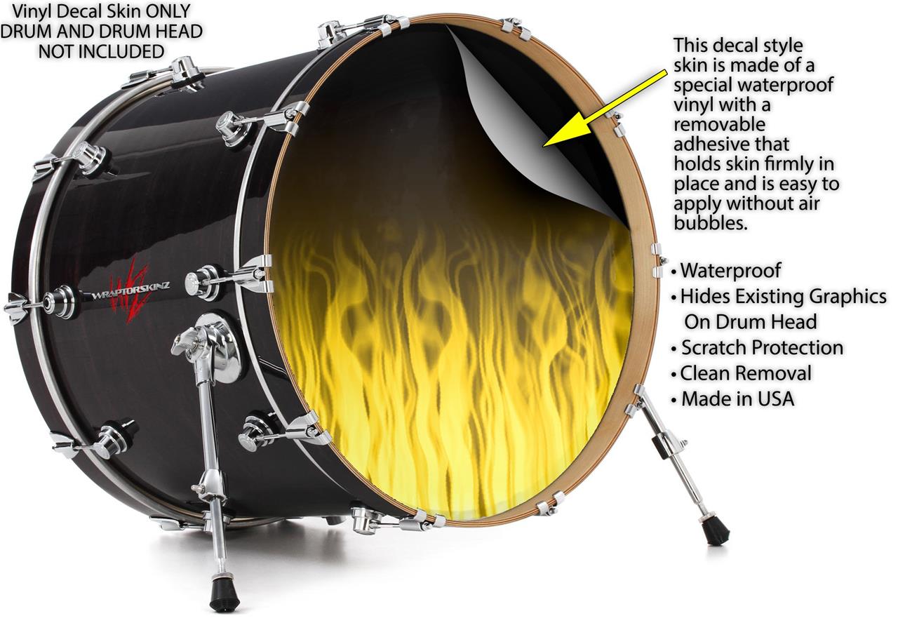 Vinyl Decal Skin Wrap for 20" Bass Kick Drum Head Fire Flames Yellow - DRUM HEAD NOT INCLUDED