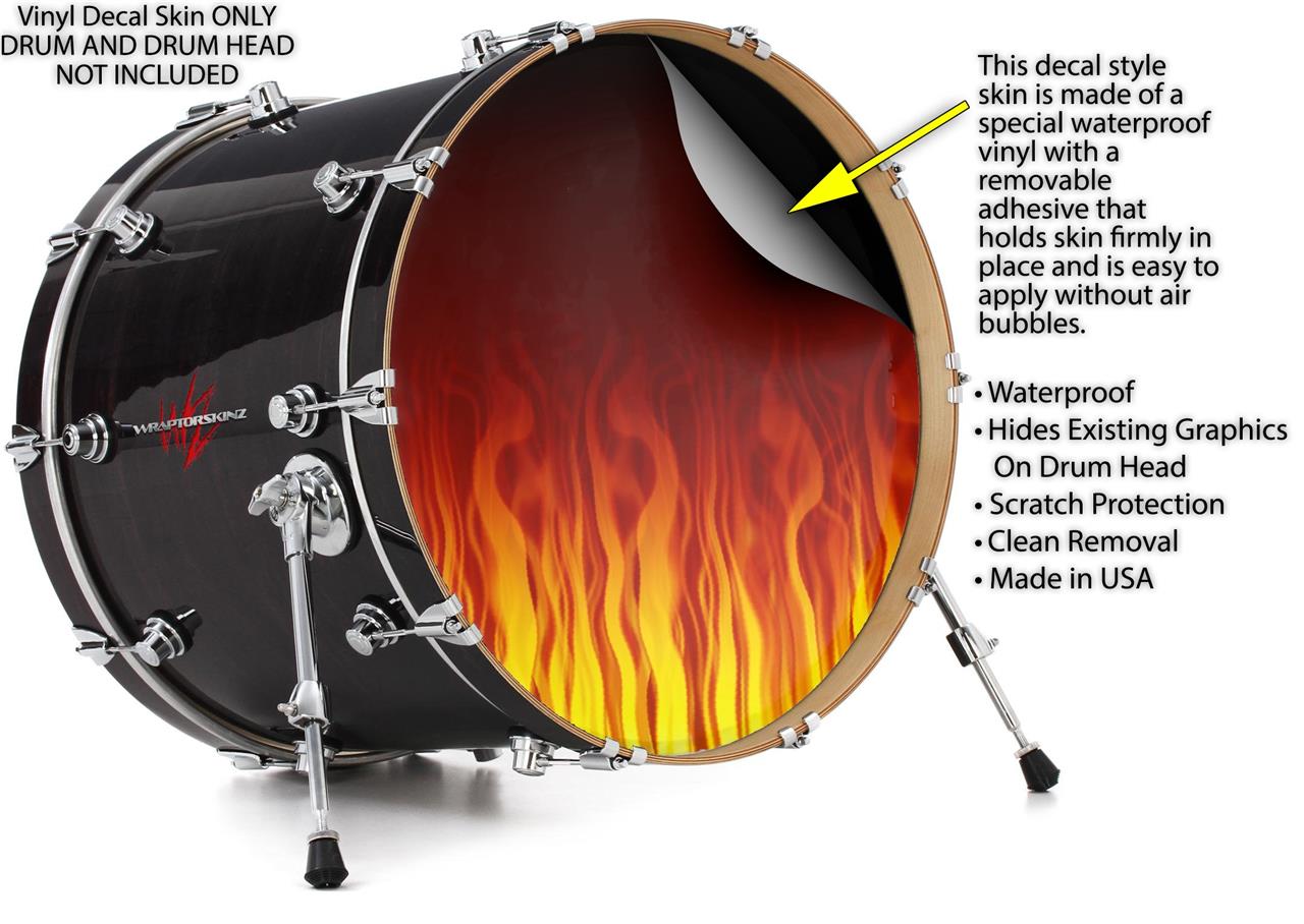 Vinyl Decal Skin Wrap for 20" Bass Kick Drum Head Fire Flames on Black - DRUM HEAD NOT INCLUDED