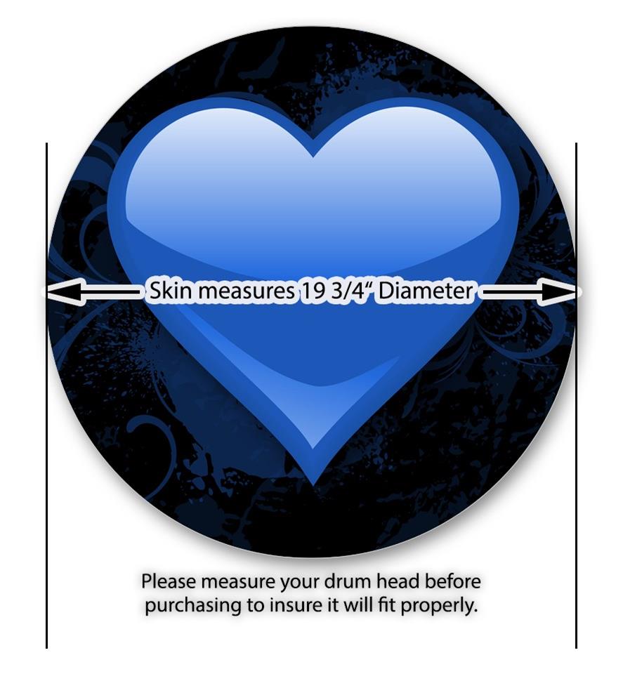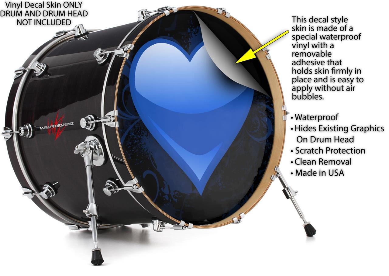 Vinyl Decal Skin Wrap for 20" Bass Kick Drum Head Glass Heart Grunge Blue - DRUM HEAD NOT INCLUDED