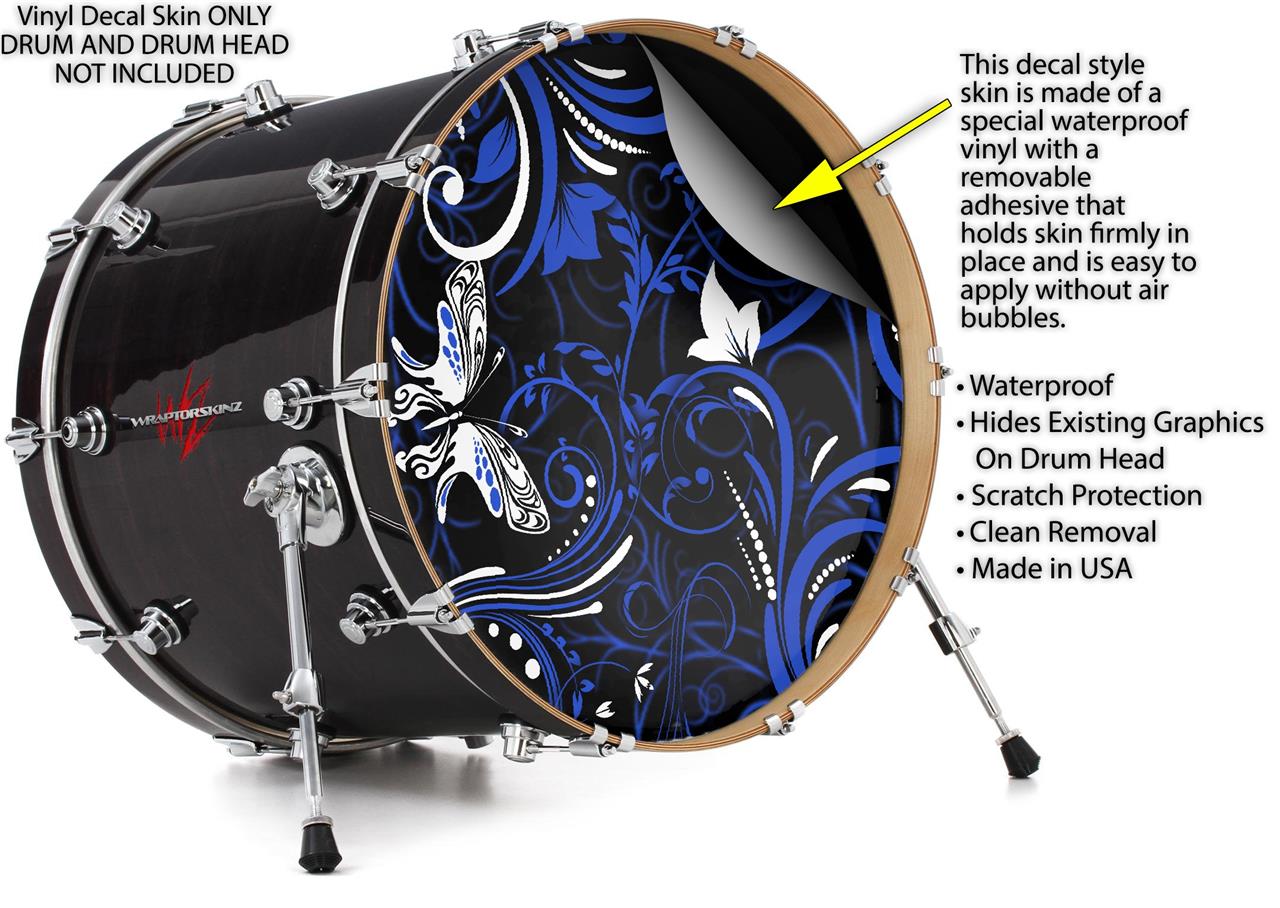 Vinyl Decal Skin Wrap for 22" Bass Kick Drum Head Twisted Garden Blue and White - DRUM HEAD NOT INCLUDED