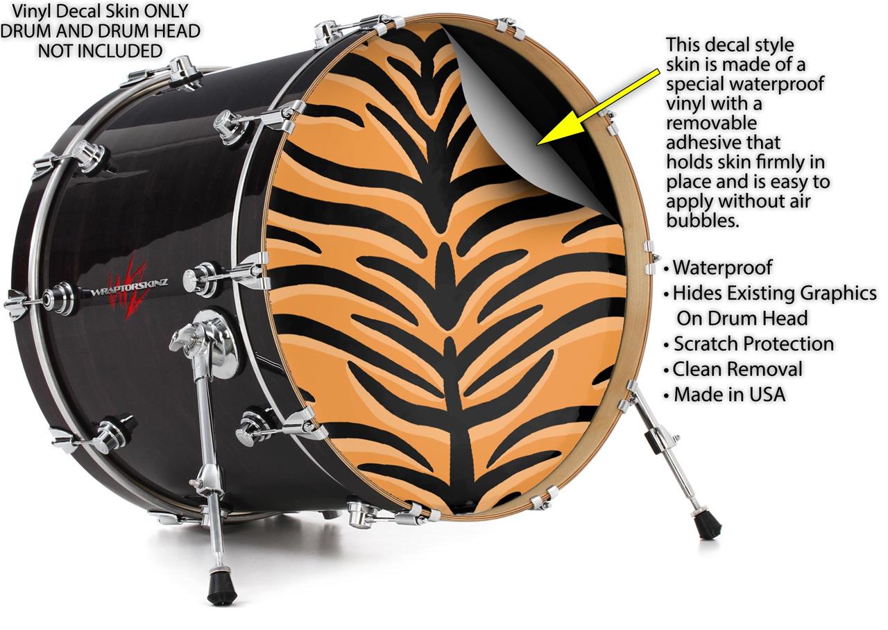 Vinyl Decal Skin Wrap for 20" Bass Kick Drum Head Tiger - DRUM HEAD NOT INCLUDED