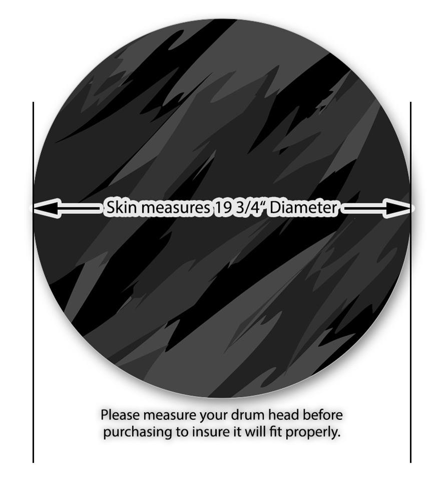This design also available in other sizes. WraptorSkinz® skin wraps compatible with most kick drum heads. Printed using superb photo quality designs and vibrant colors printed with special fade resistant inks that last even in direct sun for years. WraptorSkinz are a composite three layer commercial grade materials vinyl. The bottom layer is a air release, grey block out removable adhesive that hides existing graphics on the drum head and is easily applied without air bubbles. The middle layer is a flexible vinyl printed with UV protected, fade resistant inks that deliver superb photo quality designs in vibrant colors. Finally, we bond a professional grade laminate over the entire skin adding a glossy protective finish.