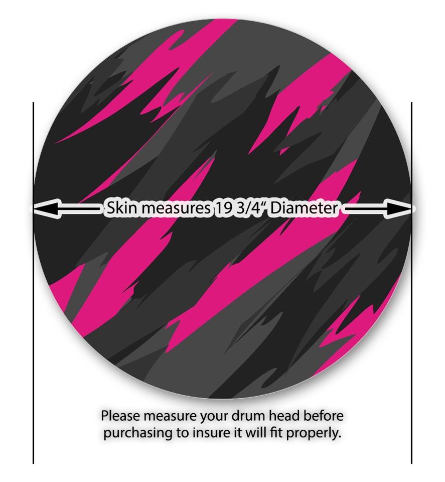 This design also available in other sizes. WraptorSkinz® skin wraps compatible with most kick drum heads. Printed using superb photo quality designs and vibrant colors printed with special fade resistant inks that last even in direct sun for years. WraptorSkinz are a composite three layer commercial grade materials vinyl. The bottom layer is a air release, grey block out removable adhesive that hides existing graphics on the drum head and is easily applied without air bubbles. The middle layer is a flexible vinyl printed with UV protected, fade resistant inks that deliver superb photo quality designs in vibrant colors. Finally, we bond a professional grade laminate over the entire skin adding a glossy protective finish.