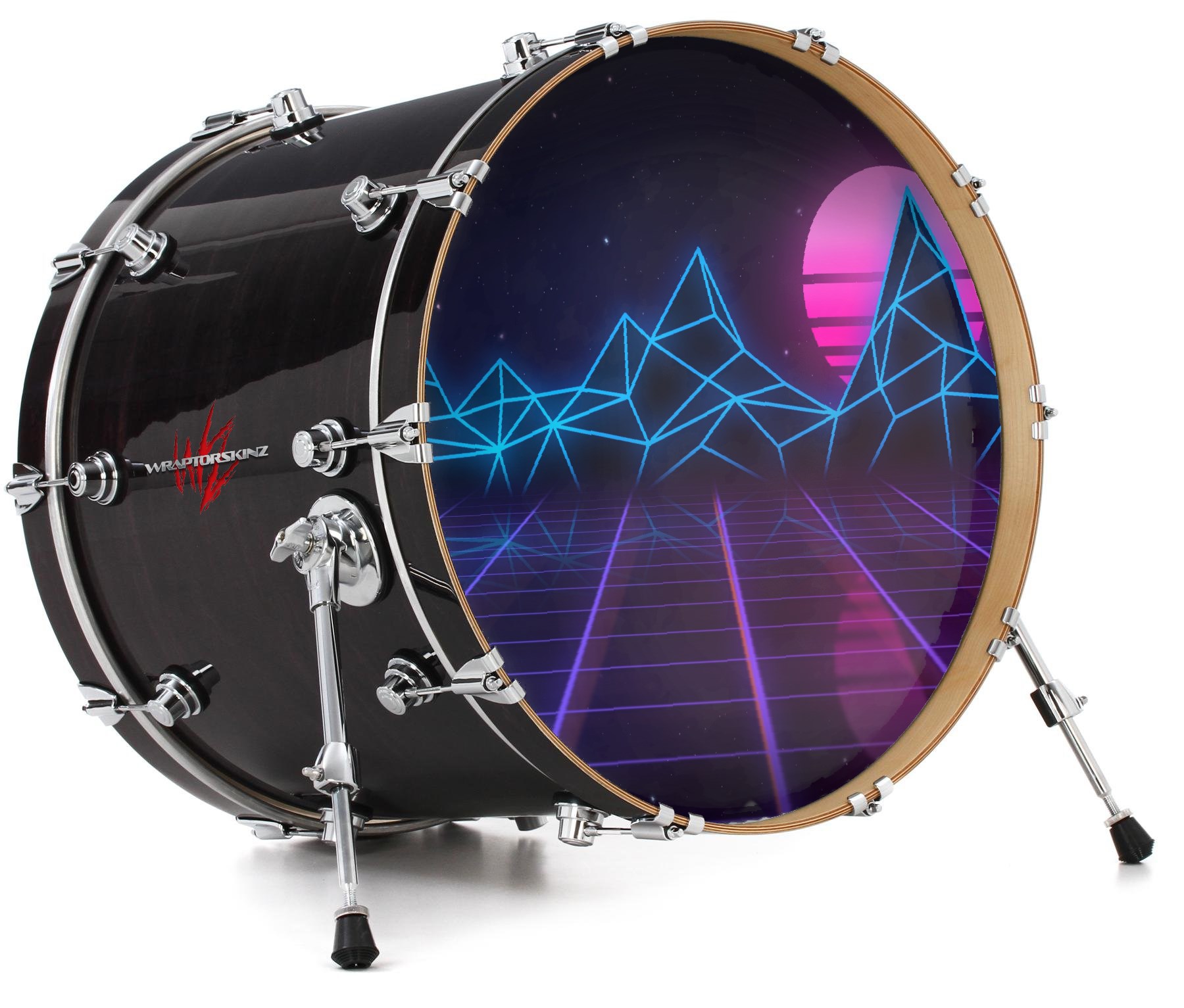 This design also available in other sizes. WraptorSkinz® skin wraps compatible with most kick drum heads. Printed using superb photo quality designs and vibrant colors printed with special fade resistant inks that last even in direct sun for years. WraptorSkinz are a composite three layer commercial grade materials vinyl. The bottom layer is a air release, grey block out removable adhesive that hides existing graphics on the drum head and is easily applied without air bubbles. The middle layer is a flexible vinyl printed with UV protected, fade resistant inks that deliver superb photo quality designs in vibrant colors. Finally, we bond a professional grade laminate over the entire skin adding a glossy protective finish.