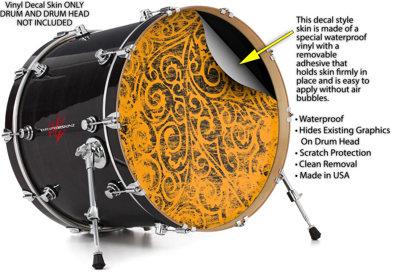Vinyl Decal Skin Wrap for 20" Bass Kick Drum Head Folder Doodles Orange - DRUM HEAD NOT INCLUDED