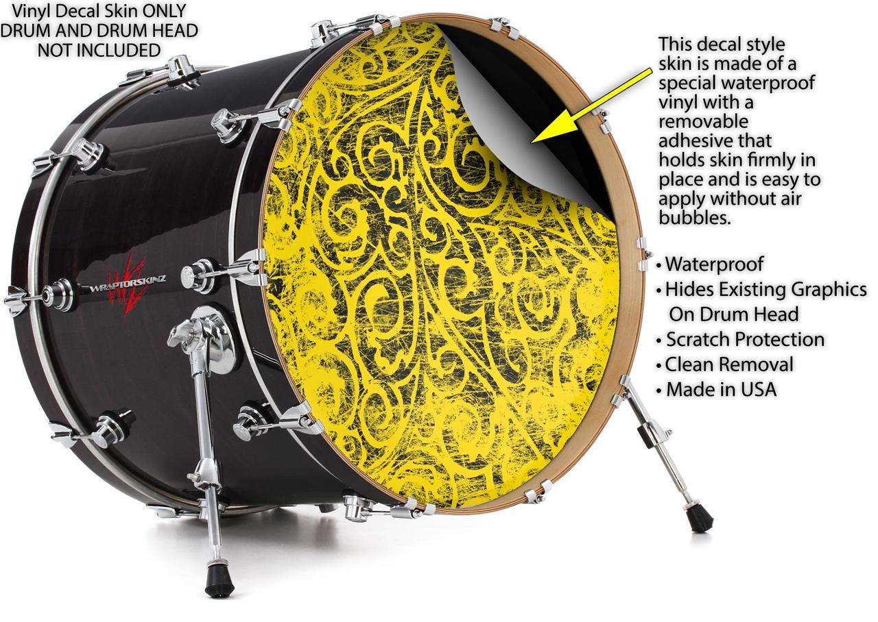 Vinyl Decal Skin Wrap for 20" Bass Kick Drum Head Folder Doodles Yellow - DRUM HEAD NOT INCLUDED