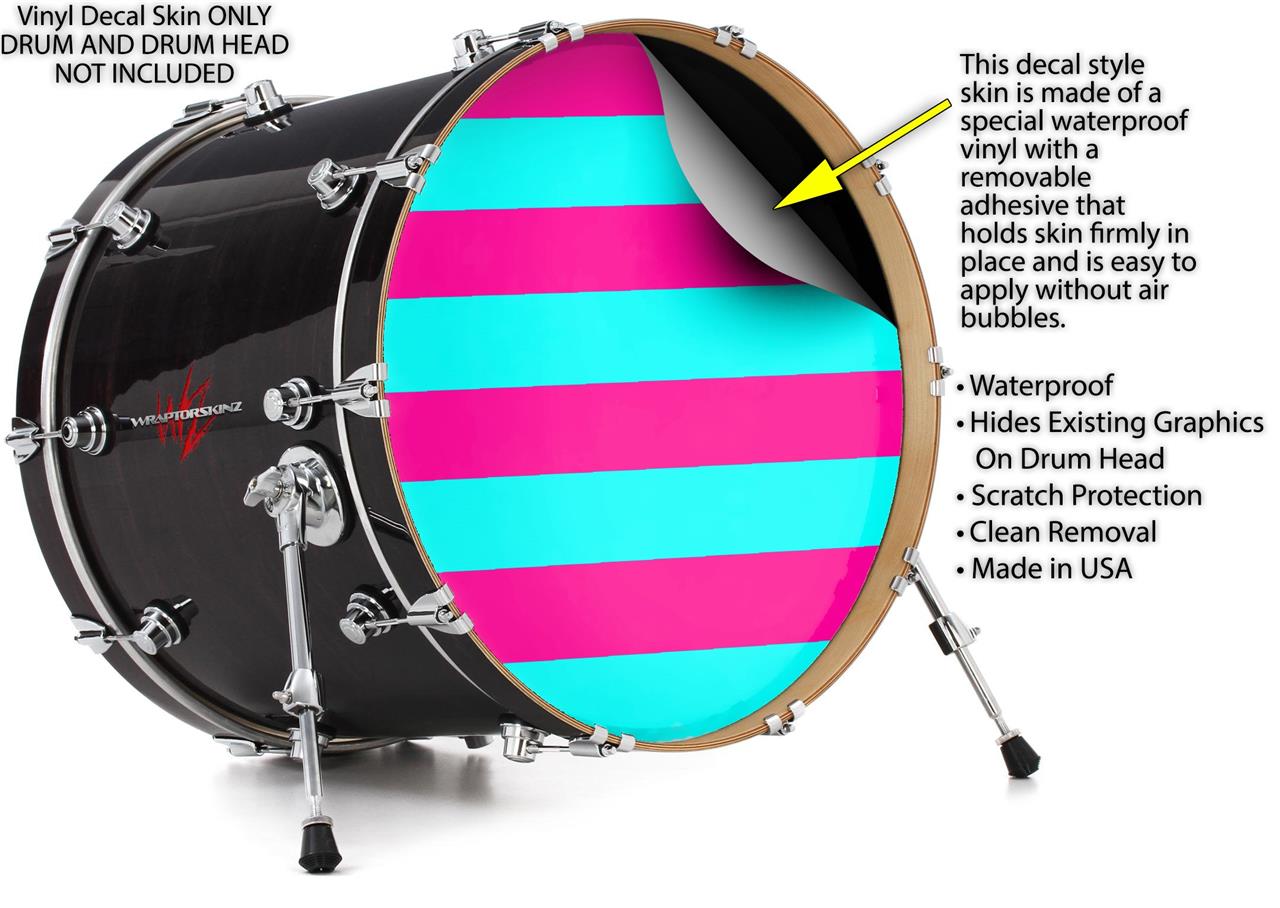 Vinyl Decal Skin Wrap for 20" Bass Kick Drum Head Psycho Stripes Neon Teal and Hot Pink - DRUM HEAD NOT INCLUDED