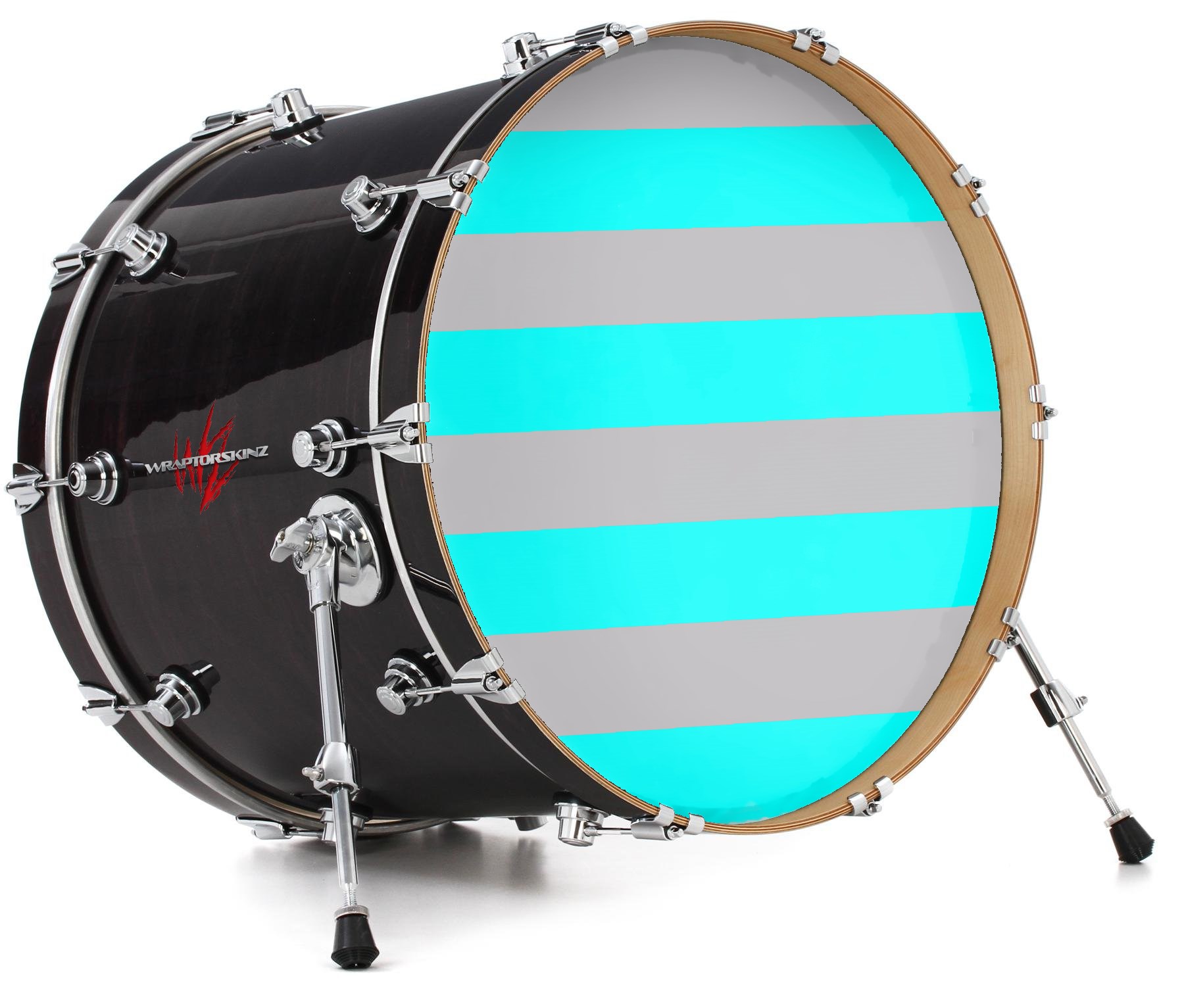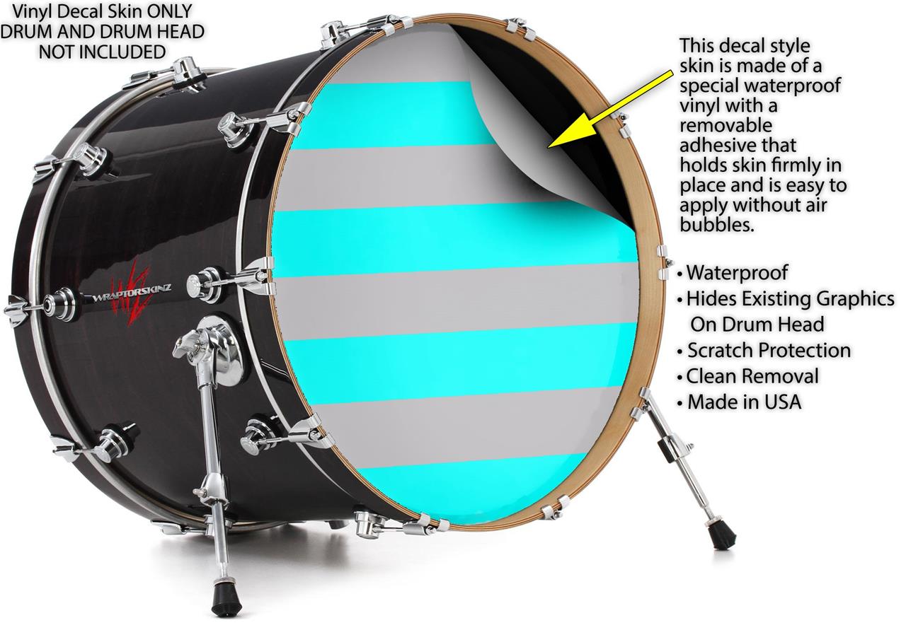 Vinyl Decal Skin Wrap for 20" Bass Kick Drum Head Psycho Stripes Neon Teal and Gray - DRUM HEAD NOT INCLUDED