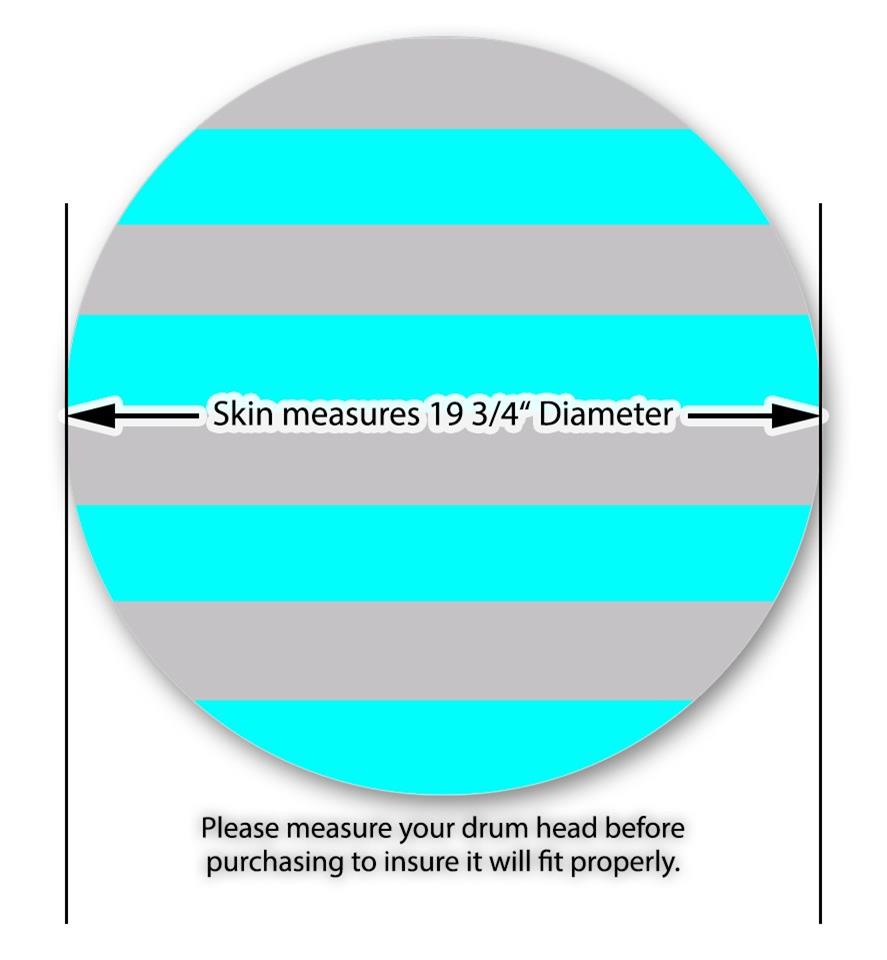 This design also available in other sizes. WraptorSkinz® skin wraps compatible with most kick drum heads. Printed using superb photo quality designs and vibrant colors printed with special fade resistant inks that last even in direct sun for years. WraptorSkinz are a composite three layer commercial grade materials vinyl. The bottom layer is a air release, grey block out removable adhesive that hides existing graphics on the drum head and is easily applied without air bubbles. The middle layer is a flexible vinyl printed with UV protected, fade resistant inks that deliver superb photo quality designs in vibrant colors. Finally, we bond a professional grade laminate over the entire skin adding a glossy protective finish.