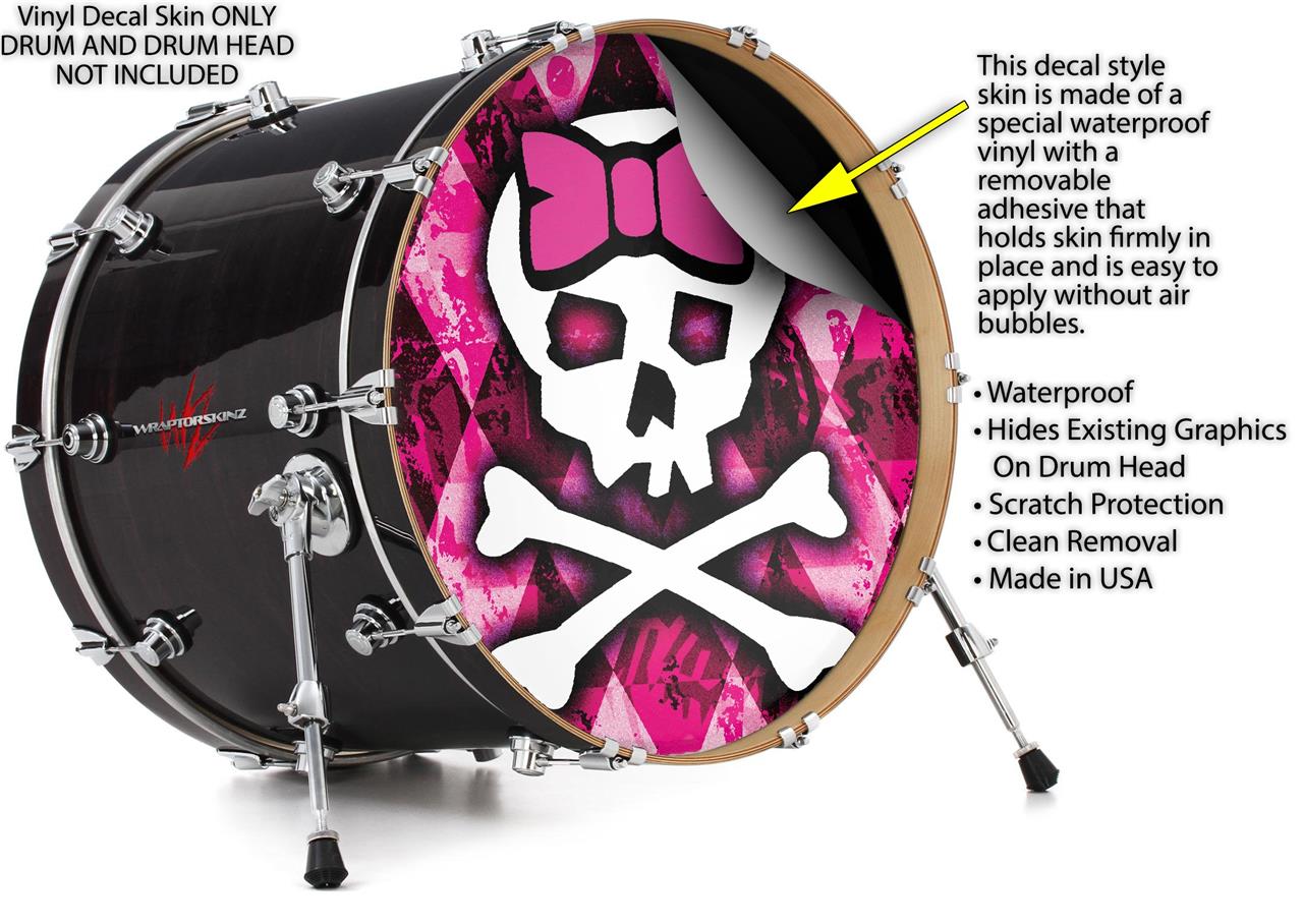 Vinyl Decal Skin Wrap for 20" Bass Kick Drum Head Pink Bow Princess - DRUM HEAD NOT INCLUDED