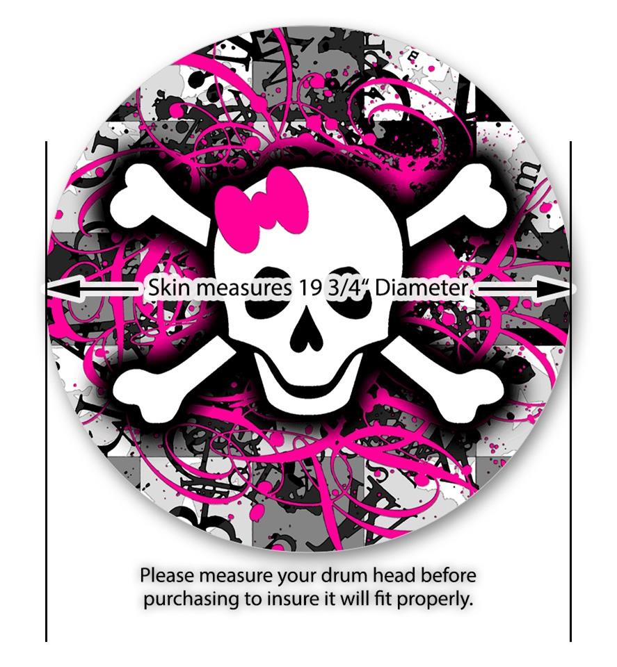 Vinyl Decal Skin Wrap for 20" Bass Kick Drum Head Splatter Girly Skull - DRUM HEAD NOT INCLUDED