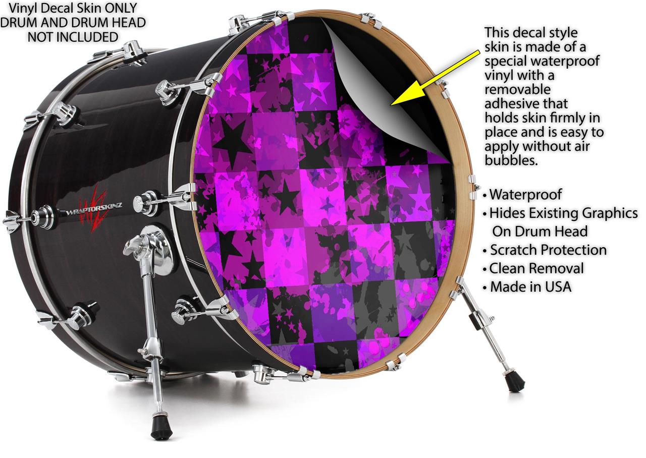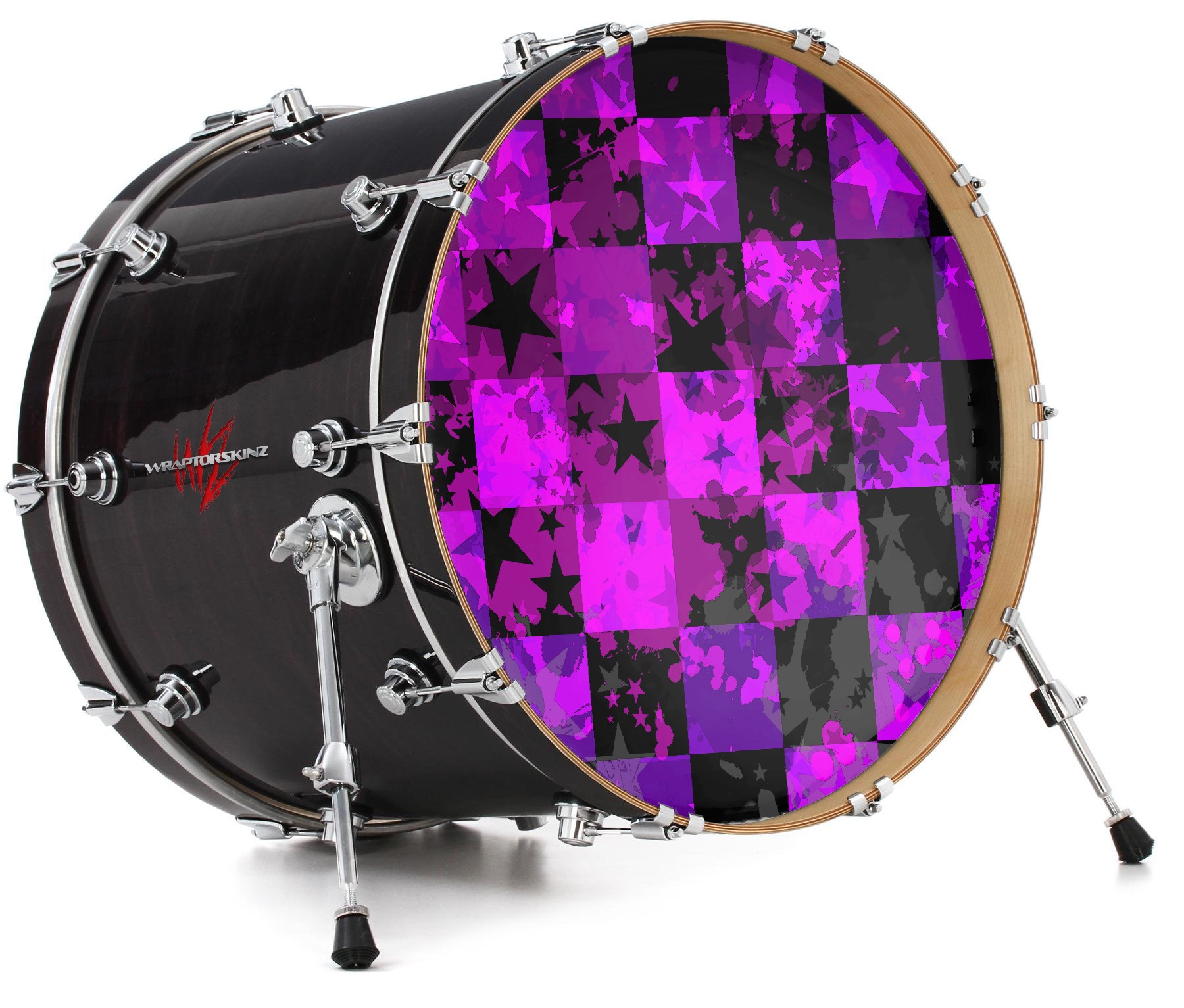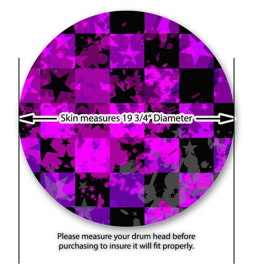 Vinyl Decal Skin Wrap for 20" Bass Kick Drum Head Purple Star Checkerboard - DRUM HEAD NOT INCLUDED