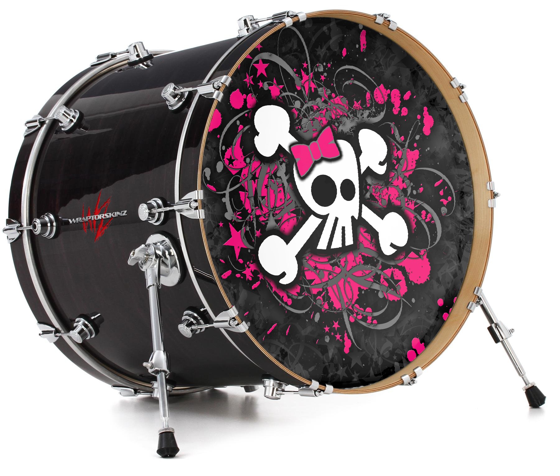 Vinyl Decal Skin Wrap for 20" Bass Kick Drum Head Girly Skull Bones - DRUM HEAD NOT INCLUDED