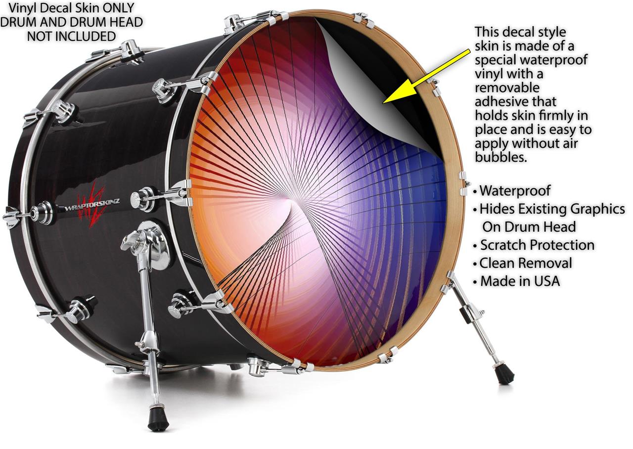 This design also available in other sizes. WraptorSkinz® skin wraps compatible with most kick drum heads. Printed using superb photo quality designs and vibrant colors printed with special fade resistant inks that last even in direct sun for years. WraptorSkinz are a composite three layer commercial grade materials vinyl. The bottom layer is a air release, grey block out removable adhesive that hides existing graphics on the drum head and is easily applied without air bubbles. The middle layer is a flexible vinyl printed with UV protected, fade resistant inks that deliver superb photo quality designs in vibrant colors. Finally, we bond a professional grade laminate over the entire skin adding a glossy protective finish.