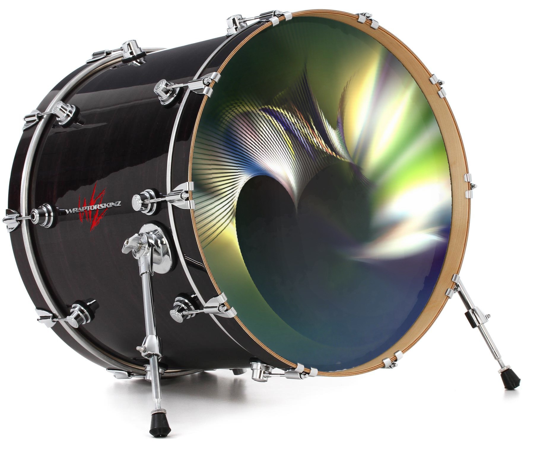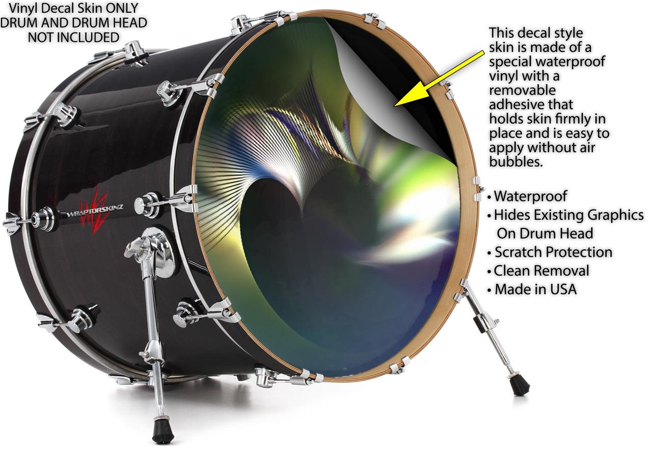 This design also available in other sizes. WraptorSkinz® skin wraps compatible with most kick drum heads. Printed using superb photo quality designs and vibrant colors printed with special fade resistant inks that last even in direct sun for years. WraptorSkinz are a composite three layer commercial grade materials vinyl. The bottom layer is a air release, grey block out removable adhesive that hides existing graphics on the drum head and is easily applied without air bubbles. The middle layer is a flexible vinyl printed with UV protected, fade resistant inks that deliver superb photo quality designs in vibrant colors. Finally, we bond a professional grade laminate over the entire skin adding a glossy protective finish.