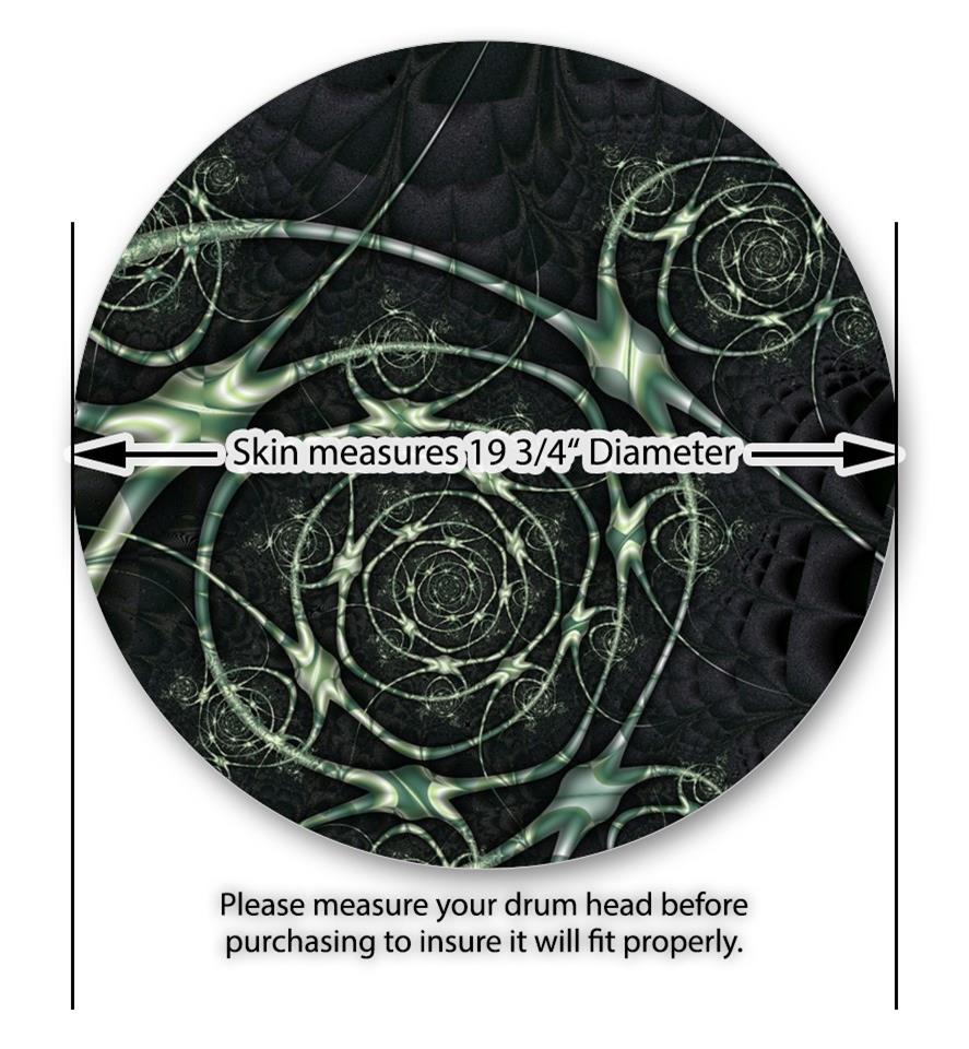 This design also available in other sizes. WraptorSkinz® skin wraps compatible with most kick drum heads. Printed using superb photo quality designs and vibrant colors printed with special fade resistant inks that last even in direct sun for years. WraptorSkinz are a composite three layer commercial grade materials vinyl. The bottom layer is a air release, grey block out removable adhesive that hides existing graphics on the drum head and is easily applied without air bubbles. The middle layer is a flexible vinyl printed with UV protected, fade resistant inks that deliver superb photo quality designs in vibrant colors. Finally, we bond a professional grade laminate over the entire skin adding a glossy protective finish.