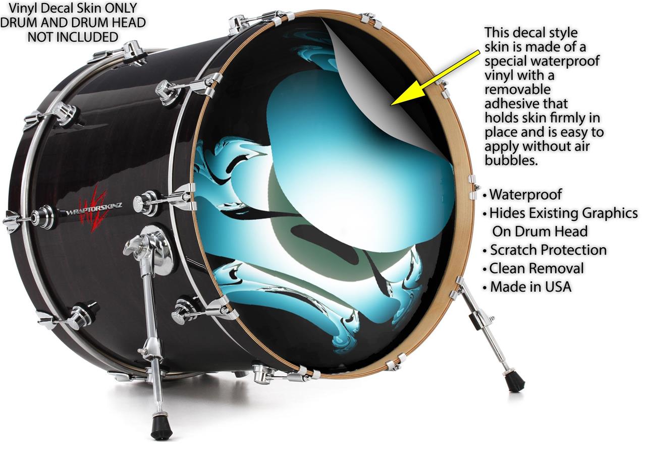 This design also available in other sizes. WraptorSkinz® skin wraps compatible with most kick drum heads. Printed using superb photo quality designs and vibrant colors printed with special fade resistant inks that last even in direct sun for years. WraptorSkinz are a composite three layer commercial grade materials vinyl. The bottom layer is a air release, grey block out removable adhesive that hides existing graphics on the drum head and is easily applied without air bubbles. The middle layer is a flexible vinyl printed with UV protected, fade resistant inks that deliver superb photo quality designs in vibrant colors. Finally, we bond a professional grade laminate over the entire skin adding a glossy protective finish.