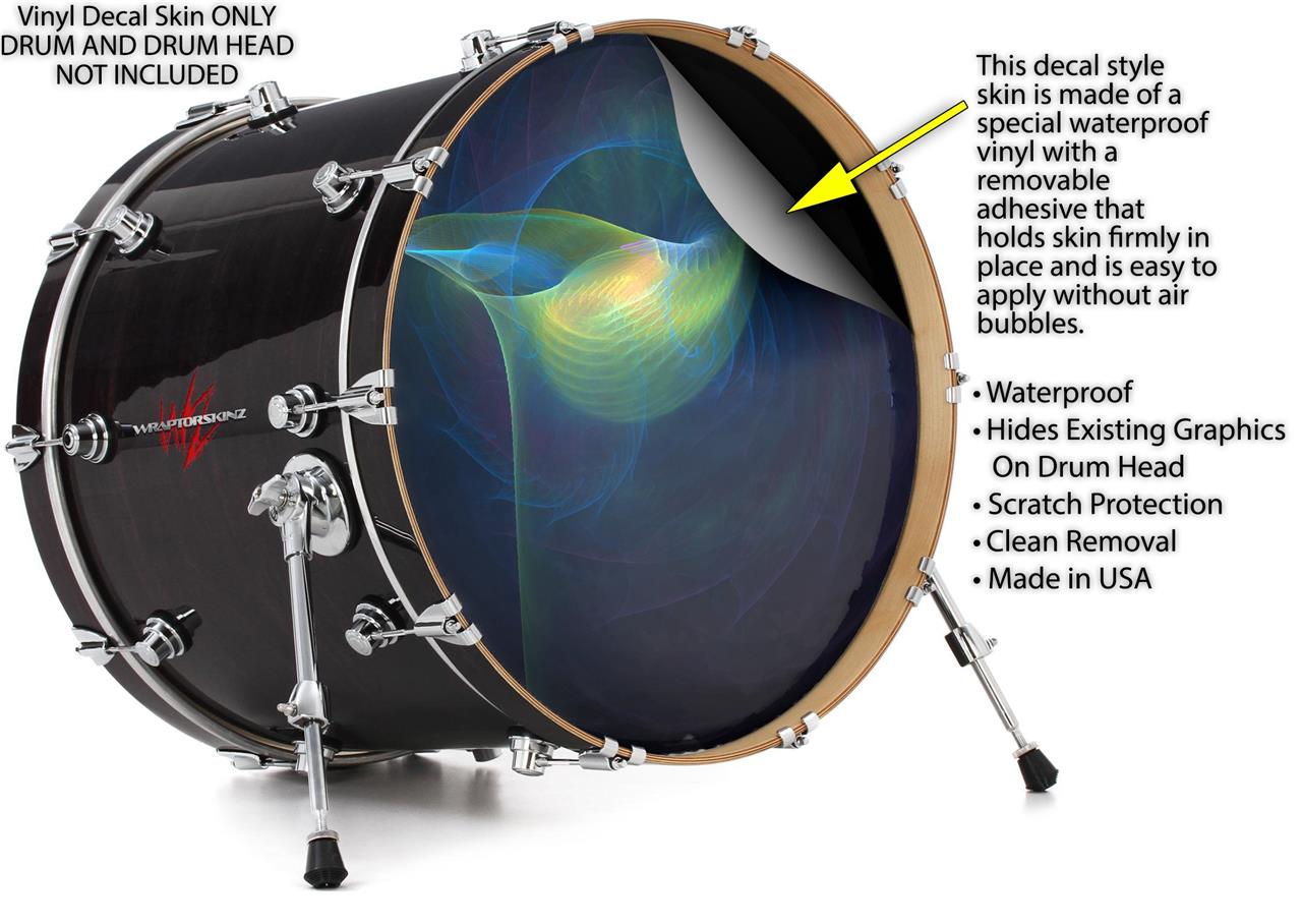 This design also available in other sizes. WraptorSkinz® skin wraps compatible with most kick drum heads. Printed using superb photo quality designs and vibrant colors printed with special fade resistant inks that last even in direct sun for years. WraptorSkinz are a composite three layer commercial grade materials vinyl. The bottom layer is a air release, grey block out removable adhesive that hides existing graphics on the drum head and is easily applied without air bubbles. The middle layer is a flexible vinyl printed with UV protected, fade resistant inks that deliver superb photo quality designs in vibrant colors. Finally, we bond a professional grade laminate over the entire skin adding a glossy protective finish.