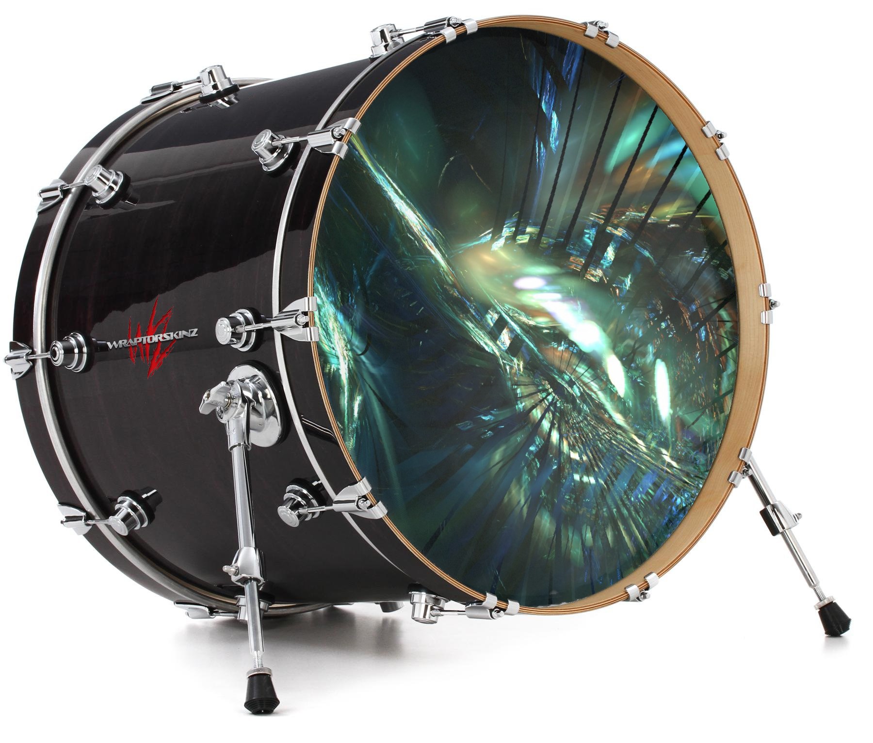 This design also available in other sizes. WraptorSkinz® skin wraps compatible with most kick drum heads. Printed using superb photo quality designs and vibrant colors printed with special fade resistant inks that last even in direct sun for years. WraptorSkinz are a composite three layer commercial grade materials vinyl. The bottom layer is a air release, grey block out removable adhesive that hides existing graphics on the drum head and is easily applied without air bubbles. The middle layer is a flexible vinyl printed with UV protected, fade resistant inks that deliver superb photo quality designs in vibrant colors. Finally, we bond a professional grade laminate over the entire skin adding a glossy protective finish.