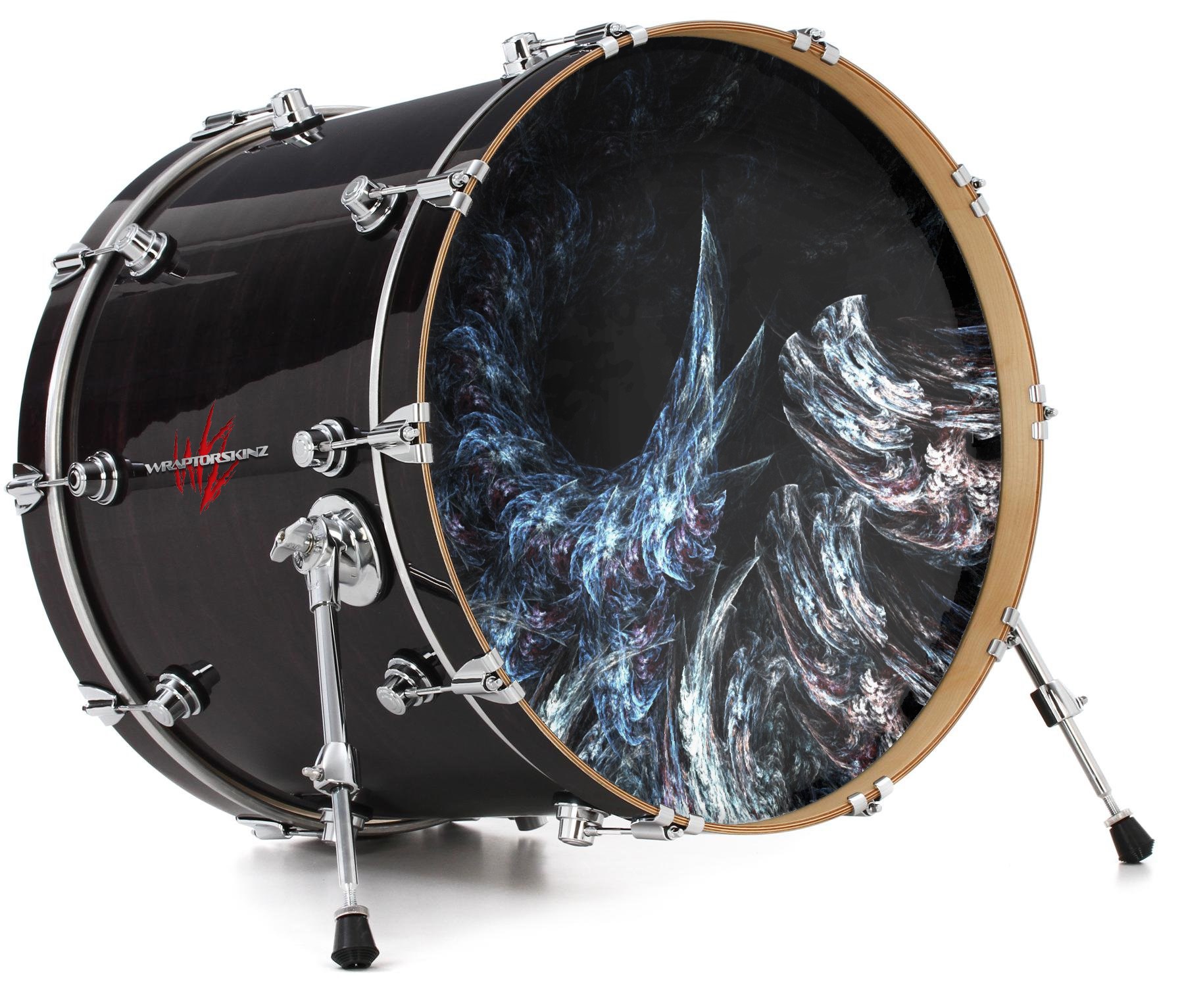This design also available in other sizes. WraptorSkinz® skin wraps compatible with most kick drum heads. Printed using superb photo quality designs and vibrant colors printed with special fade resistant inks that last even in direct sun for years. WraptorSkinz are a composite three layer commercial grade materials vinyl. The bottom layer is a air release, grey block out removable adhesive that hides existing graphics on the drum head and is easily applied without air bubbles. The middle layer is a flexible vinyl printed with UV protected, fade resistant inks that deliver superb photo quality designs in vibrant colors. Finally, we bond a professional grade laminate over the entire skin adding a glossy protective finish.
