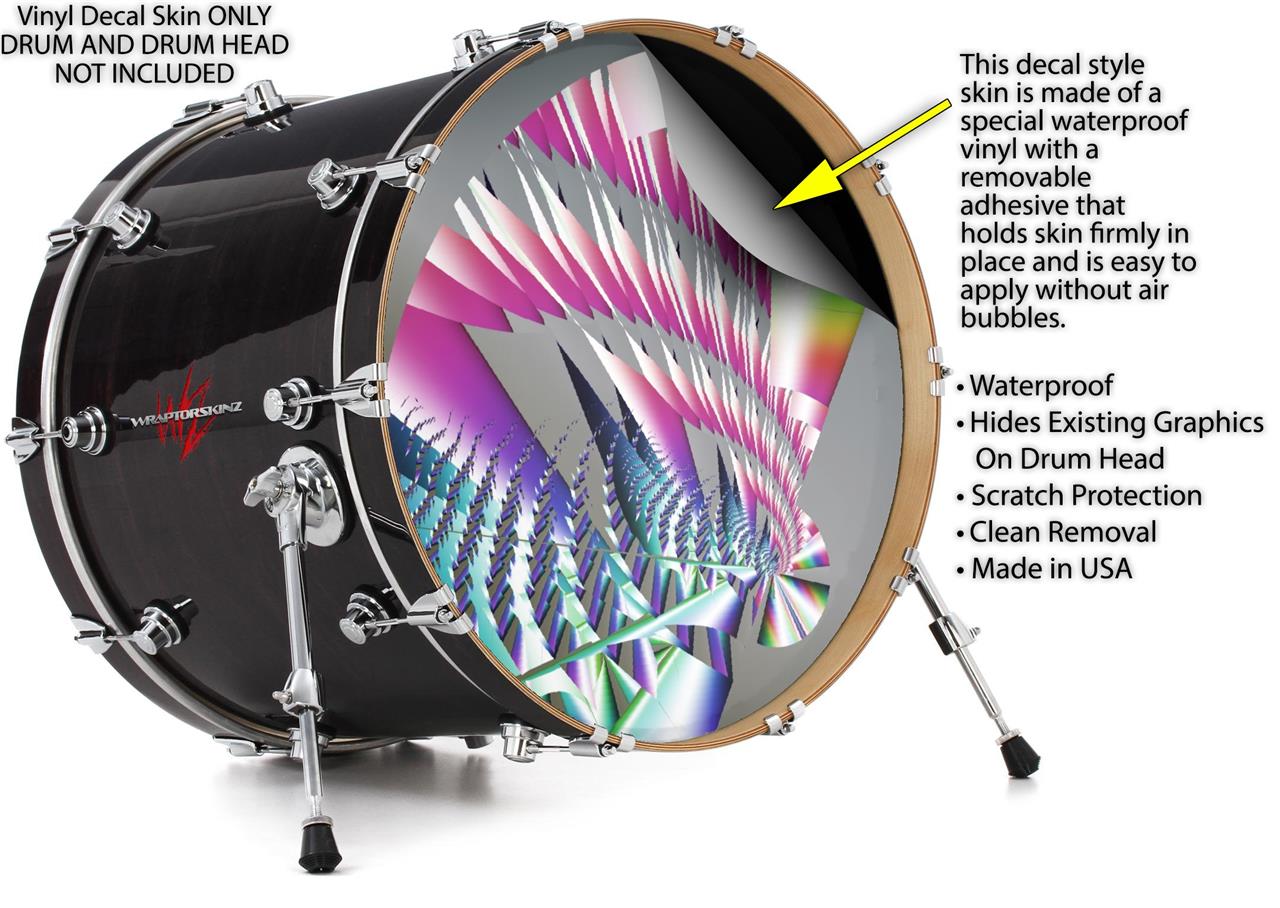 This design also available in other sizes. WraptorSkinz® skin wraps compatible with most kick drum heads. Printed using superb photo quality designs and vibrant colors printed with special fade resistant inks that last even in direct sun for years. WraptorSkinz are a composite three layer commercial grade materials vinyl. The bottom layer is a air release, grey block out removable adhesive that hides existing graphics on the drum head and is easily applied without air bubbles. The middle layer is a flexible vinyl printed with UV protected, fade resistant inks that deliver superb photo quality designs in vibrant colors. Finally, we bond a professional grade laminate over the entire skin adding a glossy protective finish.