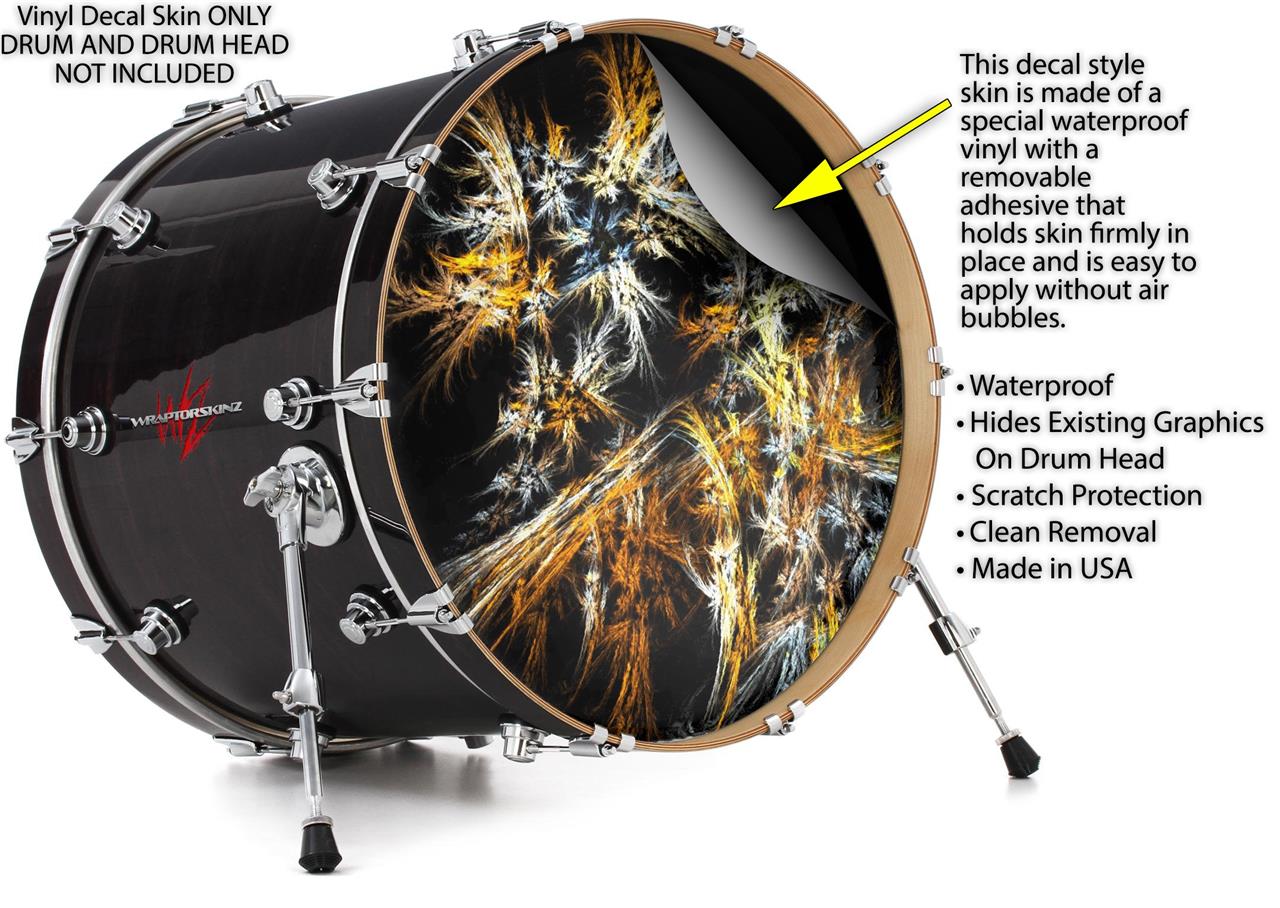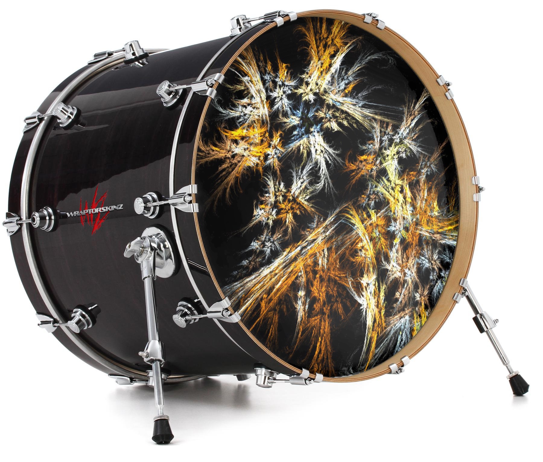 This design also available in other sizes. WraptorSkinz® skin wraps compatible with most kick drum heads. Printed using superb photo quality designs and vibrant colors printed with special fade resistant inks that last even in direct sun for years. WraptorSkinz are a composite three layer commercial grade materials vinyl. The bottom layer is a air release, grey block out removable adhesive that hides existing graphics on the drum head and is easily applied without air bubbles. The middle layer is a flexible vinyl printed with UV protected, fade resistant inks that deliver superb photo quality designs in vibrant colors. Finally, we bond a professional grade laminate over the entire skin adding a glossy protective finish.