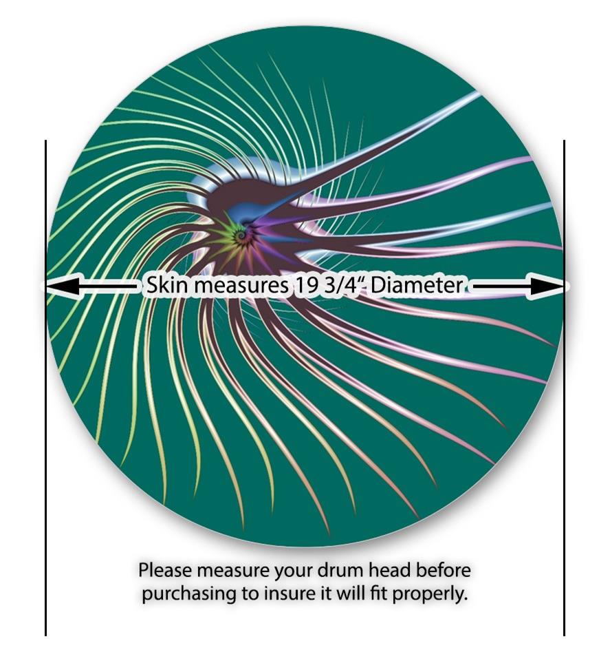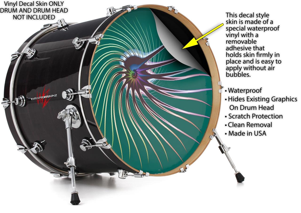 This design also available in other sizes. WraptorSkinz® skin wraps compatible with most kick drum heads. Printed using superb photo quality designs and vibrant colors printed with special fade resistant inks that last even in direct sun for years. WraptorSkinz are a composite three layer commercial grade materials vinyl. The bottom layer is a air release, grey block out removable adhesive that hides existing graphics on the drum head and is easily applied without air bubbles. The middle layer is a flexible vinyl printed with UV protected, fade resistant inks that deliver superb photo quality designs in vibrant colors. Finally, we bond a professional grade laminate over the entire skin adding a glossy protective finish.