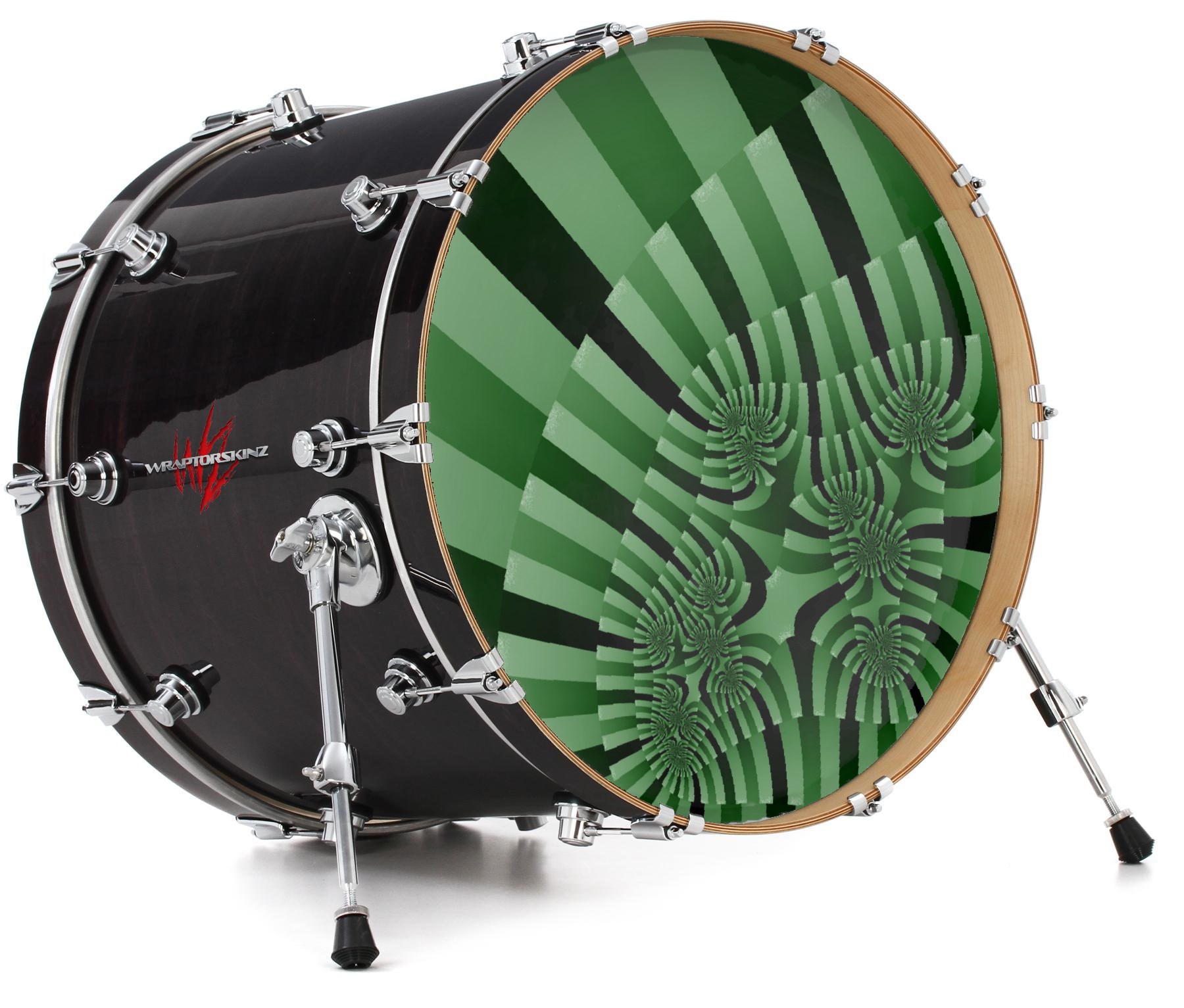 This design also available in other sizes. WraptorSkinz® skin wraps compatible with most kick drum heads. Printed using superb photo quality designs and vibrant colors printed with special fade resistant inks that last even in direct sun for years. WraptorSkinz are a composite three layer commercial grade materials vinyl. The bottom layer is a air release, grey block out removable adhesive that hides existing graphics on the drum head and is easily applied without air bubbles. The middle layer is a flexible vinyl printed with UV protected, fade resistant inks that deliver superb photo quality designs in vibrant colors. Finally, we bond a professional grade laminate over the entire skin adding a glossy protective finish.