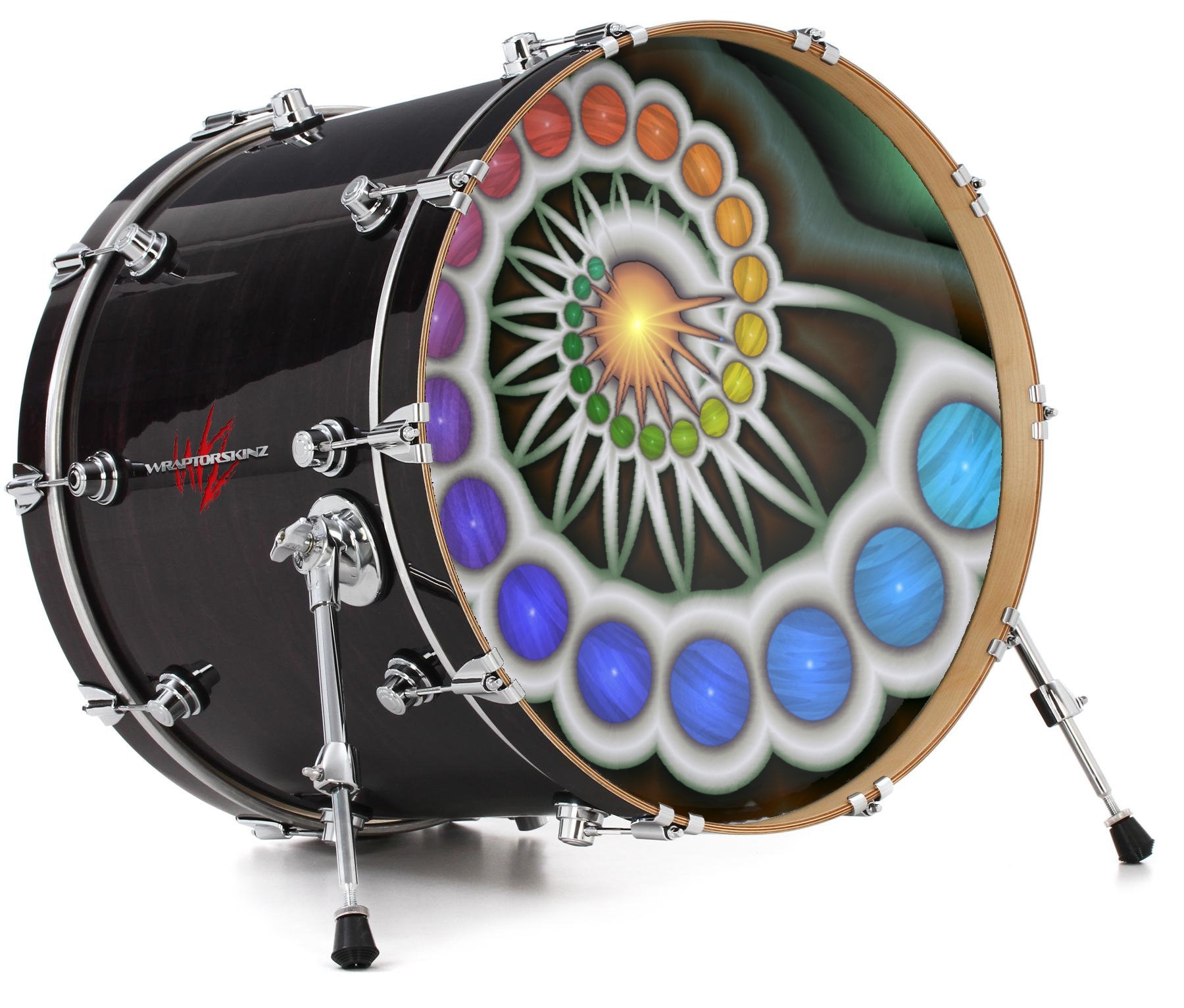 This design also available in other sizes. WraptorSkinz® skin wraps compatible with most kick drum heads. Printed using superb photo quality designs and vibrant colors printed with special fade resistant inks that last even in direct sun for years. WraptorSkinz are a composite three layer commercial grade materials vinyl. The bottom layer is a air release, grey block out removable adhesive that hides existing graphics on the drum head and is easily applied without air bubbles. The middle layer is a flexible vinyl printed with UV protected, fade resistant inks that deliver superb photo quality designs in vibrant colors. Finally, we bond a professional grade laminate over the entire skin adding a glossy protective finish.