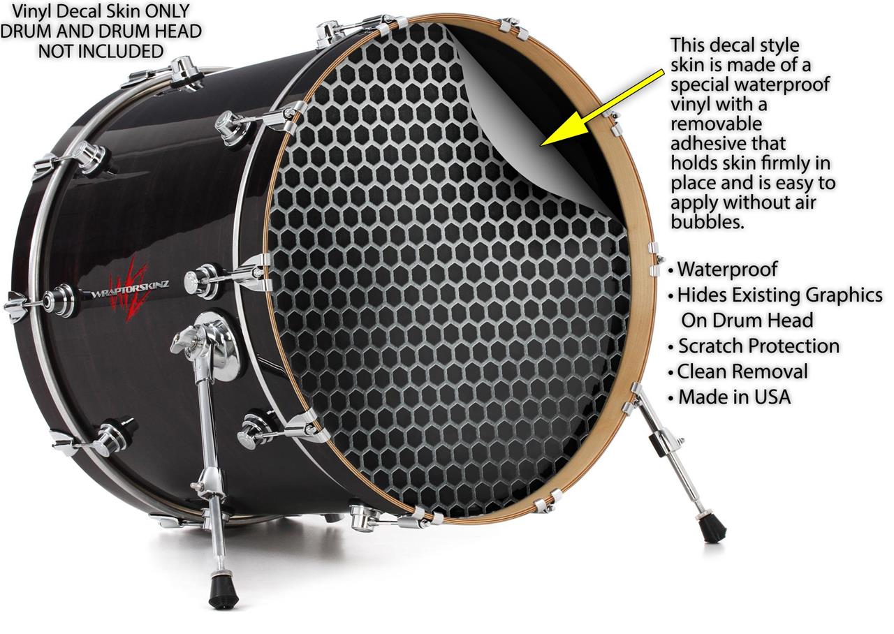 Vinyl Decal Skin Wrap for 22" Bass Kick Drum Head Mesh Metal Hex 02 - DRUM HEAD NOT INCLUDED