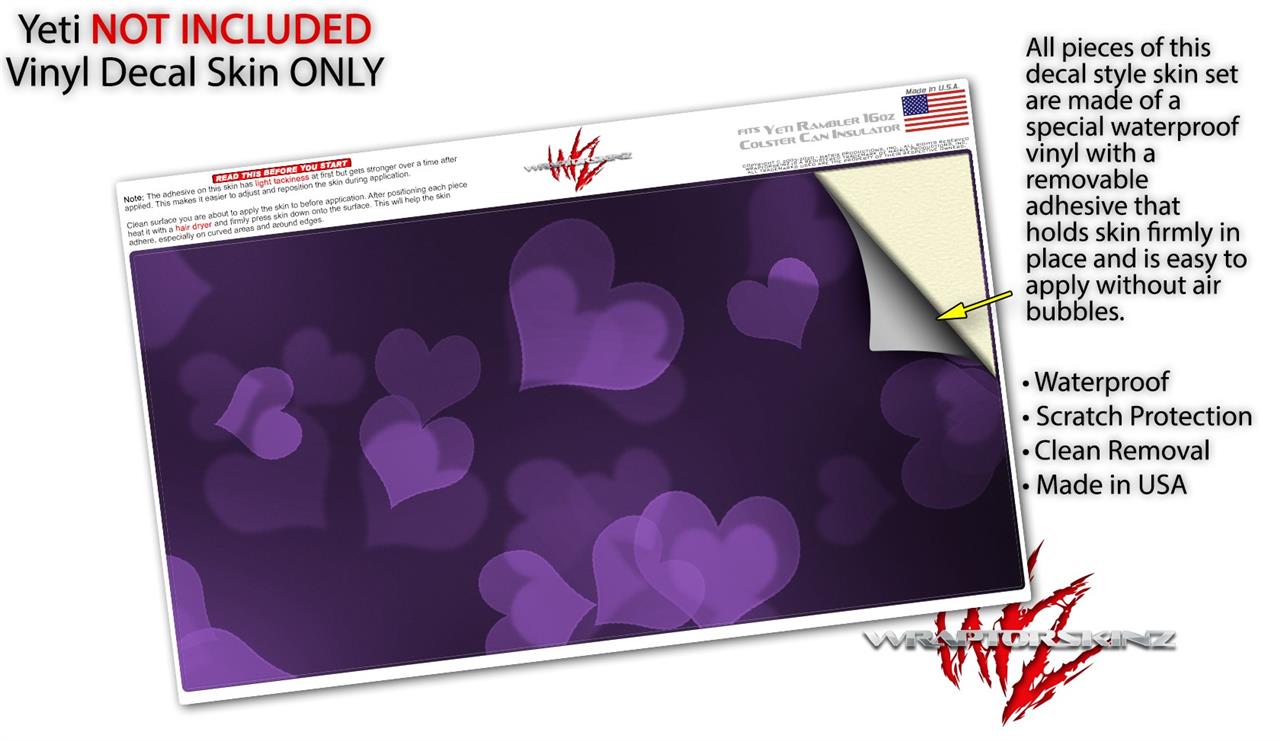 WraptorSkinz Skin Decal Wrap compatible with Yeti 16oz Tall Colster Can Cooler Insulator Bokeh Hearts Purple (COOLER NOT INCLUDED)