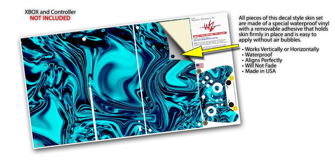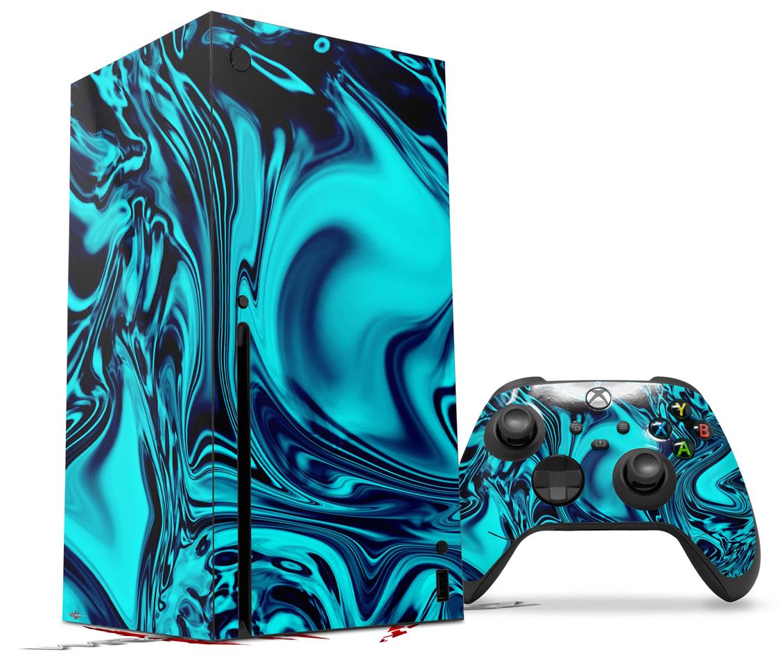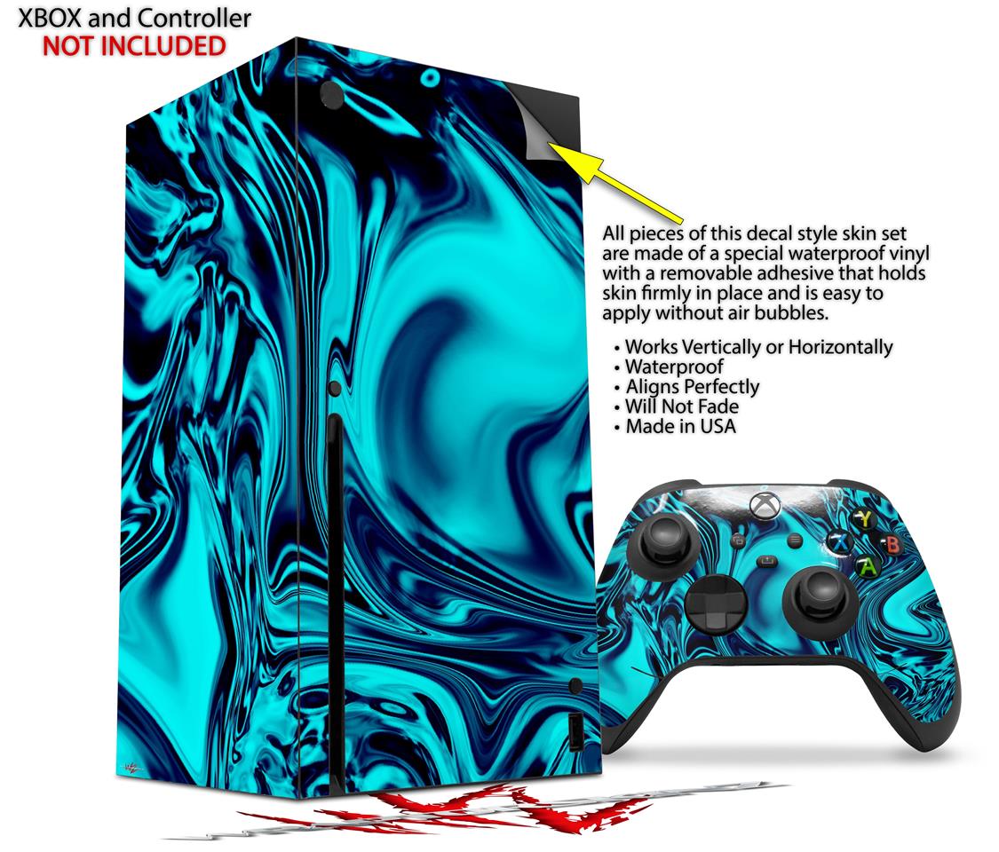 WraptorSkinz Skin Wrap compatible with the 2020 XBOX Series X Console and Controller Liquid Metal Chrome Neon Blue (XBOX NOT INCLUDED)