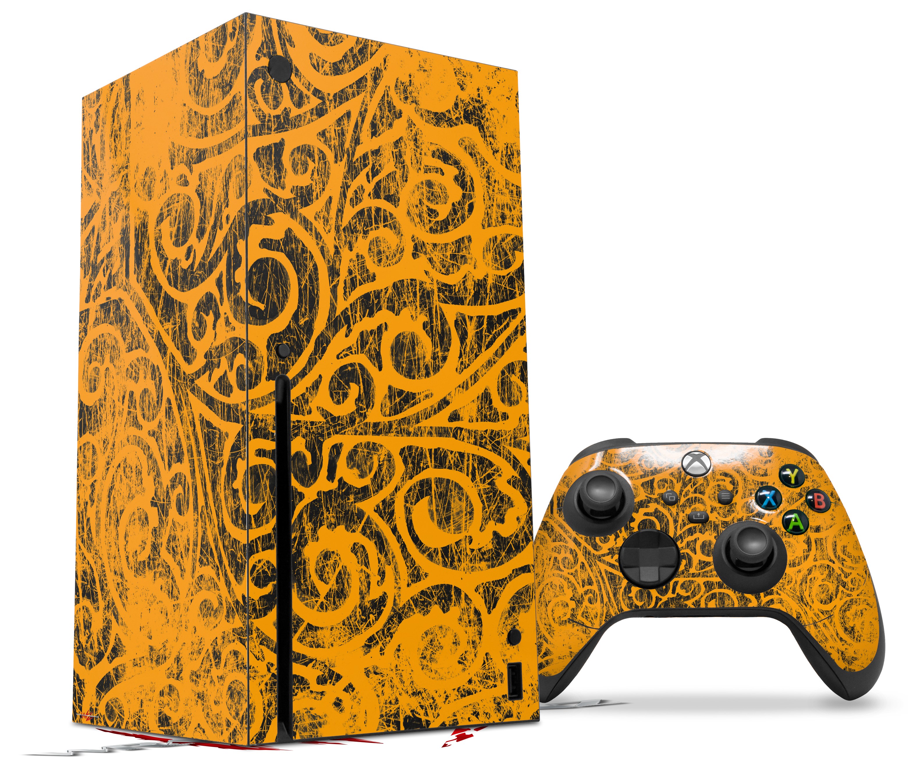 WraptorSkinz Skin Wrap compatible with the 2020 XBOX Series X Console and Controller Folder Doodles Orange (XBOX NOT INCLUDED)