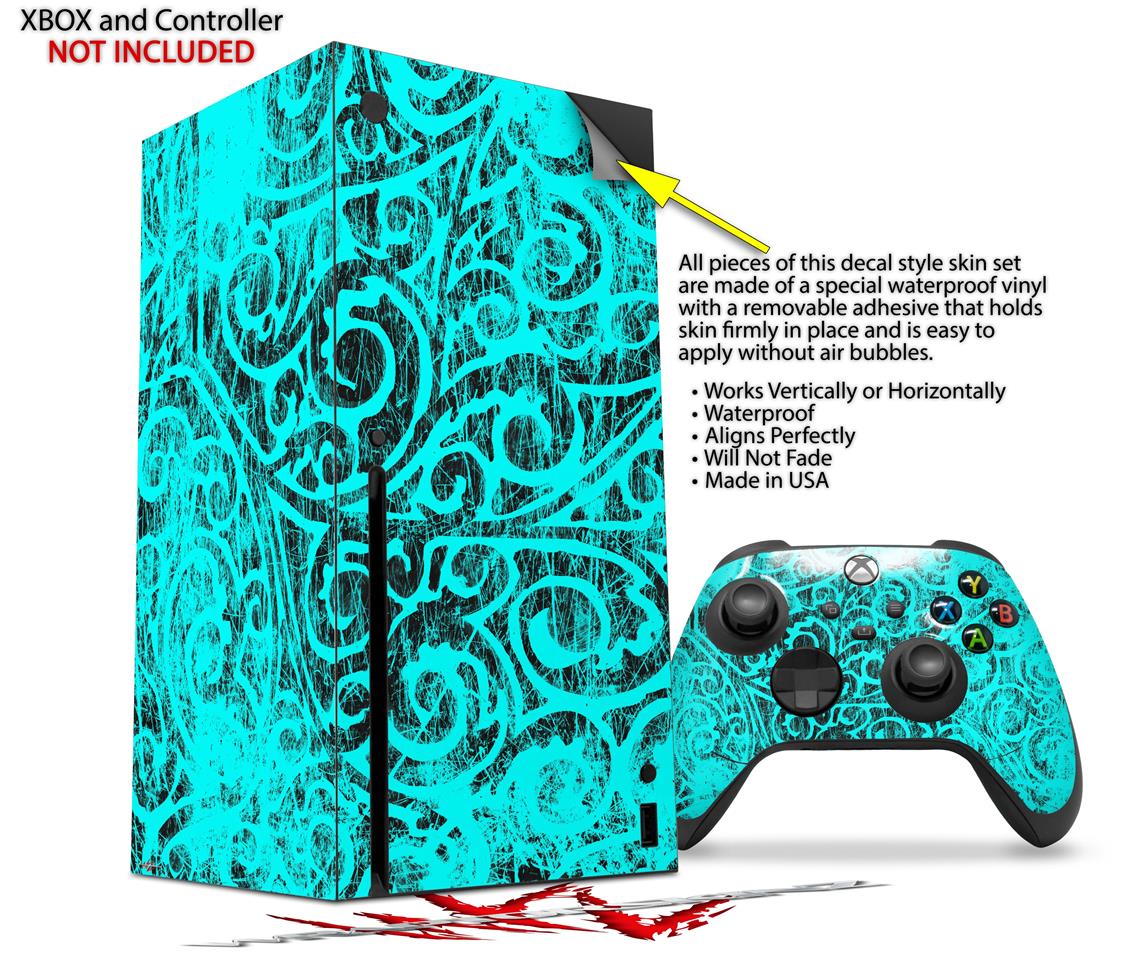 WraptorSkinz Skin Wrap compatible with the 2020 XBOX Series X Console and Controller Folder Doodles Neon Teal (XBOX NOT INCLUDED)