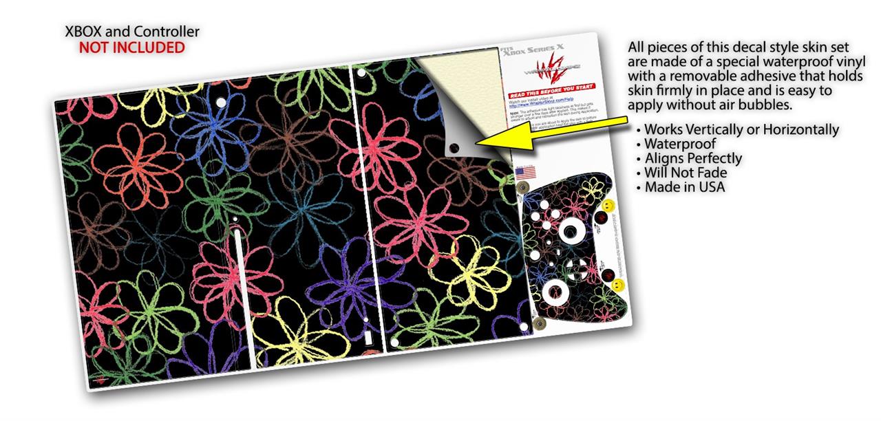 WraptorSkinz Skin Wrap compatible with the 2020 XBOX Series X Console and Controller Kearas Flowers on Black (XBOX NOT INCLUDED)