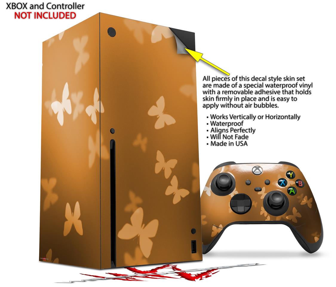 WraptorSkinz Skin Wrap compatible with the 2020 XBOX Series X Console and Controller Bokeh Butterflies Orange (XBOX NOT INCLUDED)
