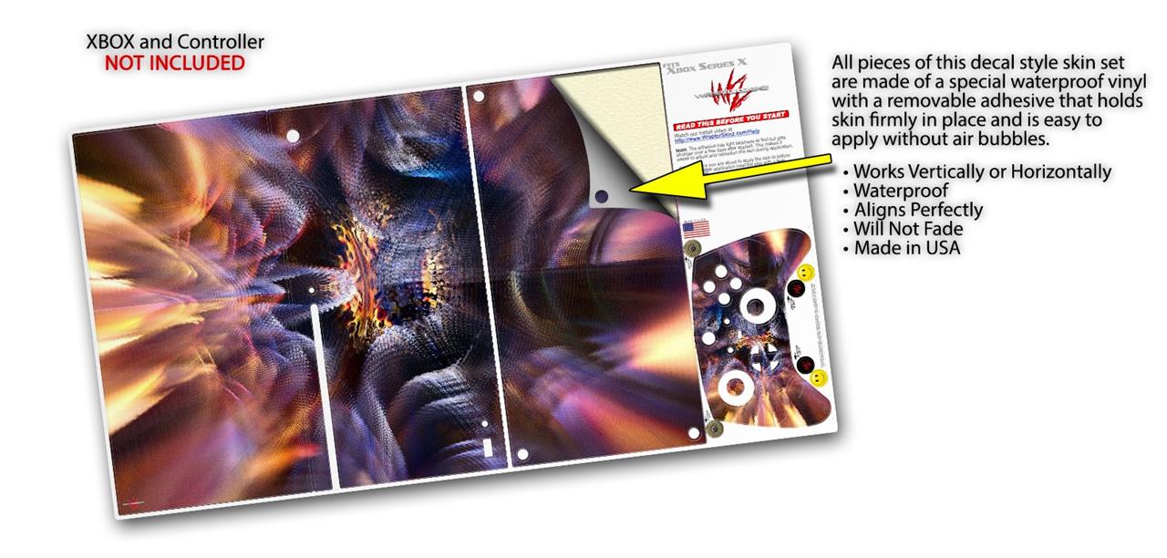 WraptorSkinz® skin wraps for the XBOX Series X gaming console and controller reelase November 2020 are printed using superb photo quality designs and vibrant colors printed with special fade resistant inks that last even in direct sun for years. WraptorSkinz are a composite of two layers of commercial grade materials. The bottom layer is a soft, flexible vinyl with a special removable adhesive that is easily positioned, applied without air bubbles. Next we print the bottom layer with UV protected, fade resistant inks that deliver superb photo quality designs in vibrant colors. Last, we bond a professional grade laminate over the entire skin adding a glossy protective finish. This product is not affiliated with or endorsed by Microsoft or the XBOX brand.