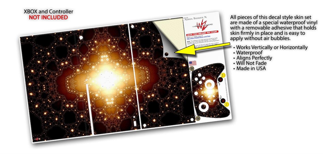 WraptorSkinz® skin wraps for the XBOX Series X gaming console and controller reelase November 2020 are printed using superb photo quality designs and vibrant colors printed with special fade resistant inks that last even in direct sun for years. WraptorSkinz are a composite of two layers of commercial grade materials. The bottom layer is a soft, flexible vinyl with a special removable adhesive that is easily positioned, applied without air bubbles. Next we print the bottom layer with UV protected, fade resistant inks that deliver superb photo quality designs in vibrant colors. Last, we bond a professional grade laminate over the entire skin adding a glossy protective finish. This product is not affiliated with or endorsed by Microsoft or the XBOX brand.