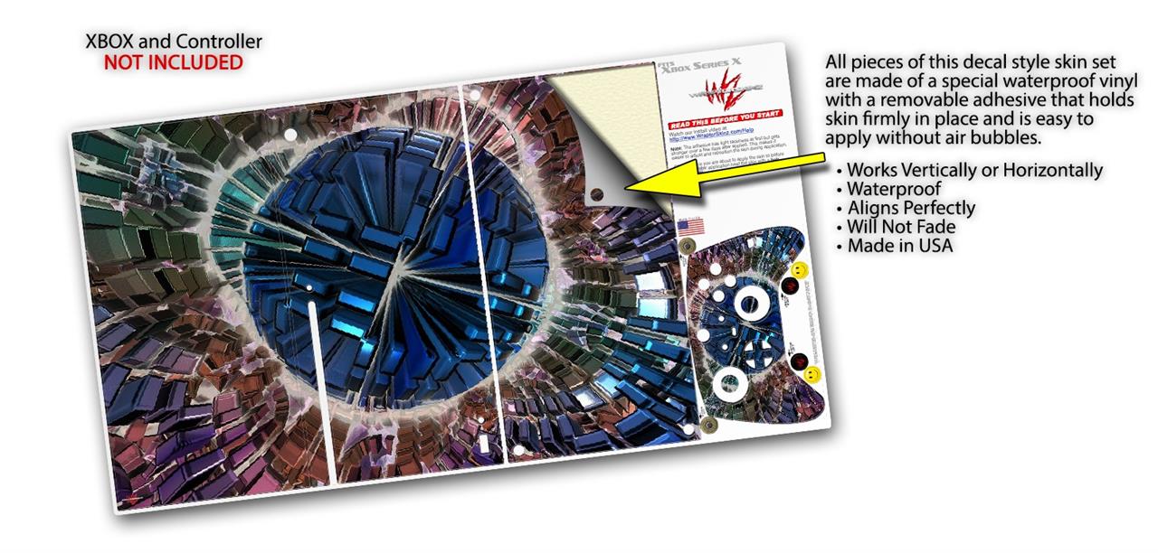WraptorSkinz® skin wraps for the XBOX Series X gaming console and controller reelase November 2020 are printed using superb photo quality designs and vibrant colors printed with special fade resistant inks that last even in direct sun for years. WraptorSkinz are a composite of two layers of commercial grade materials. The bottom layer is a soft, flexible vinyl with a special removable adhesive that is easily positioned, applied without air bubbles. Next we print the bottom layer with UV protected, fade resistant inks that deliver superb photo quality designs in vibrant colors. Last, we bond a professional grade laminate over the entire skin adding a glossy protective finish. This product is not affiliated with or endorsed by Microsoft or the XBOX brand.
